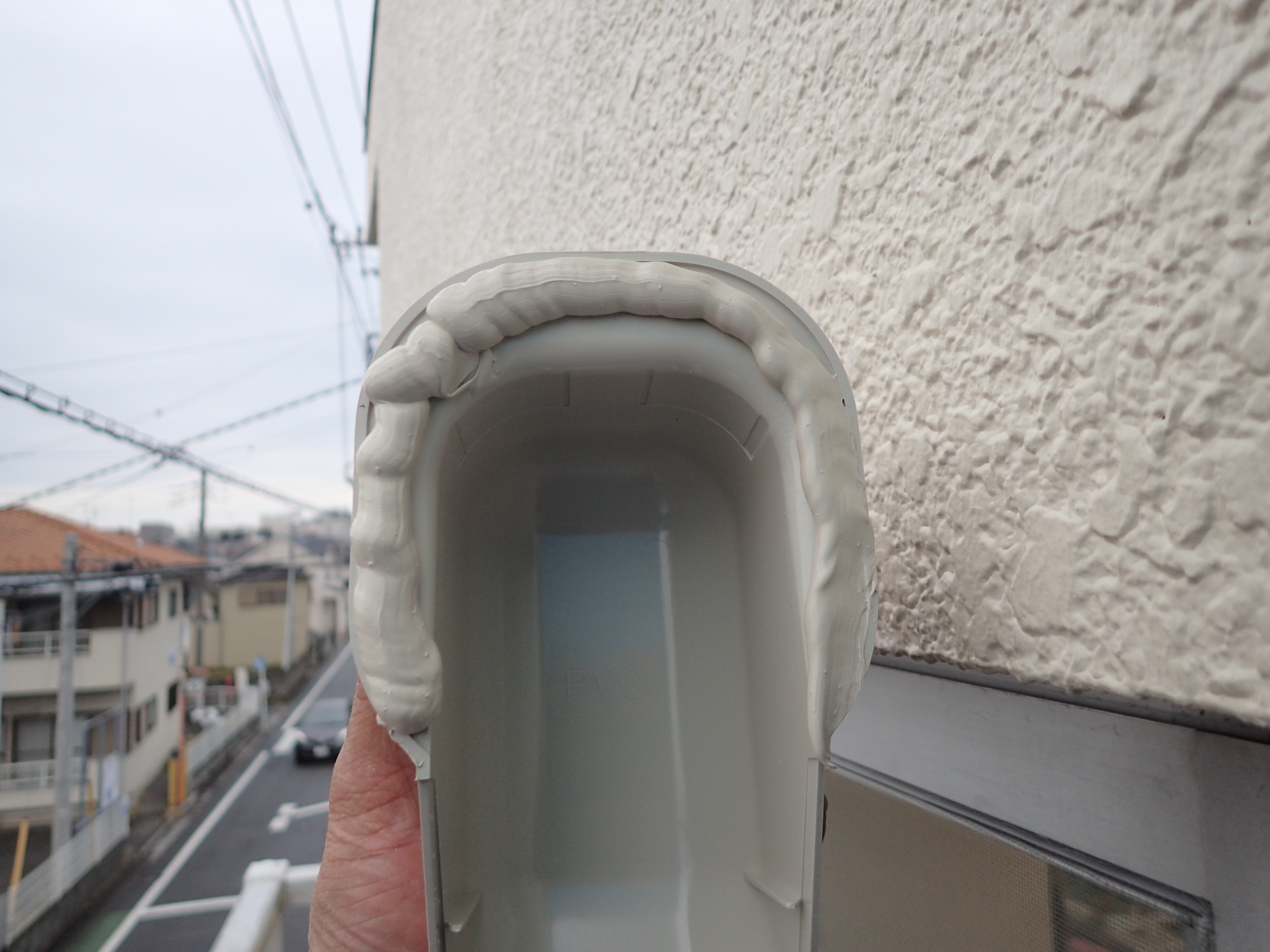 色がグレーで申し訳ないですが、耐火パテで少し埋めて見ました