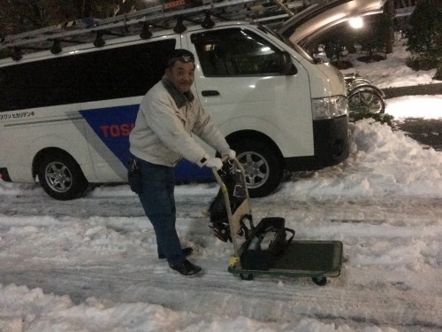 こんな感じでスコップ持参で雪かきをしながらお伺いをしておりますので