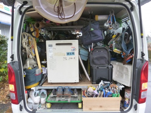 急遽倉庫に貸し出し用給湯器を取りに帰り、再びY様宅へ向かいます。