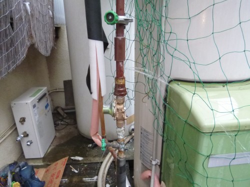 こちらの太陽熱温水器と電気温水器の連結システムから水漏れでお困りです