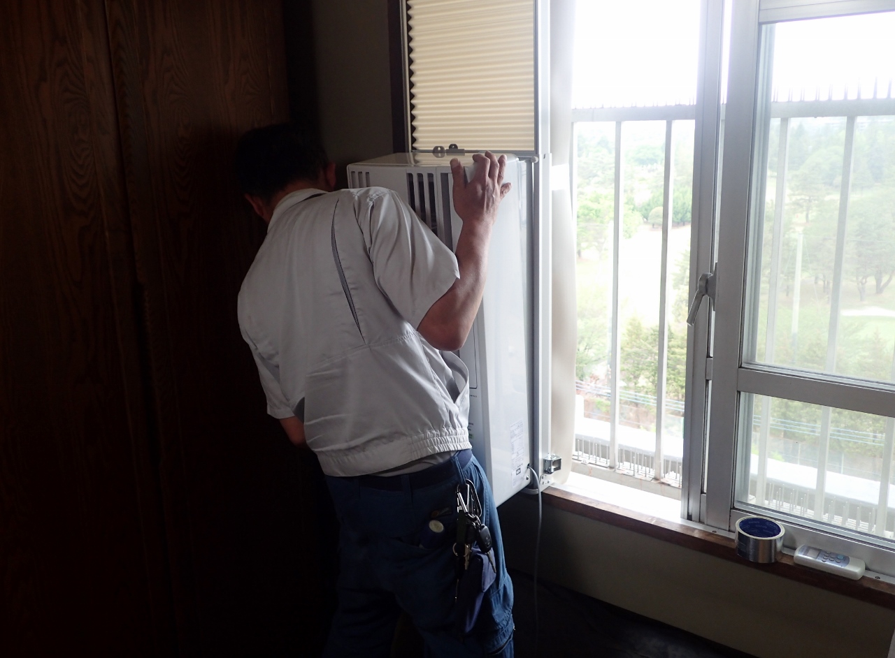 新ウインドエアコンの取付準備です