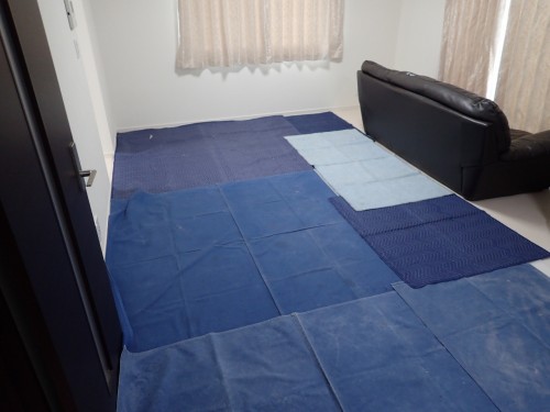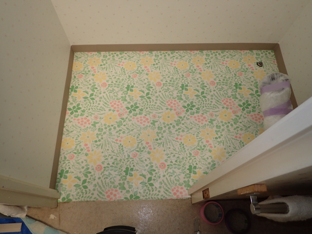 壁紙が終りまして、次にクッションフロアーの張替えです