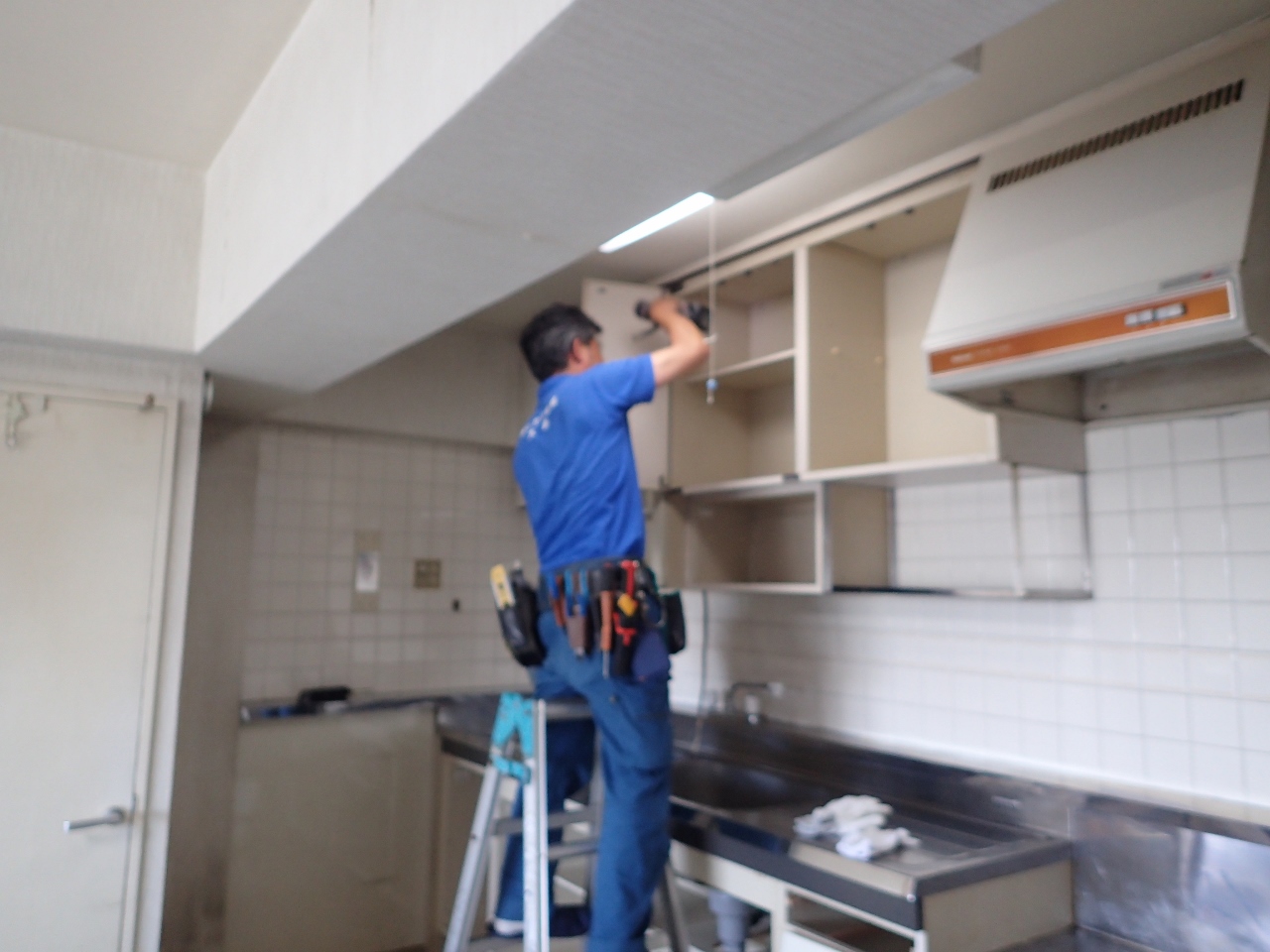 既設の洗面台撤収と、洗濯機の移動が終ったら I内装さんにバトンタッチです。
