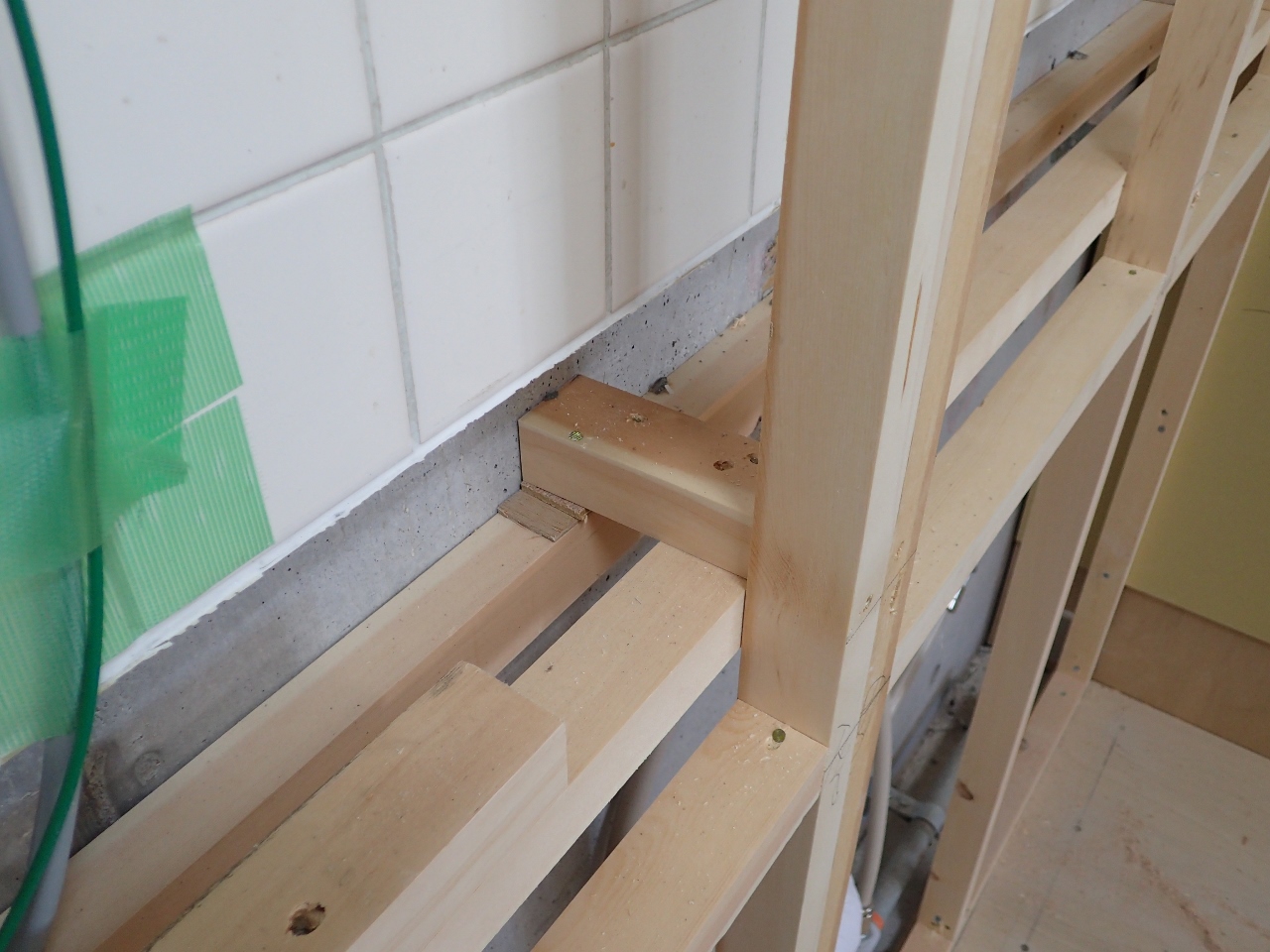 で、いよいよ大工さんに入って頂いて、キッチンを支える軸組を施工してもらいます