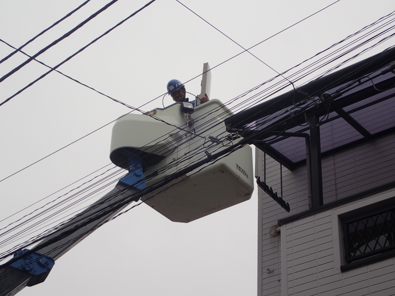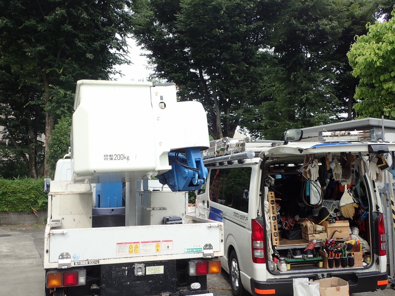 アンテナ工事に、高所作業車で出発です。