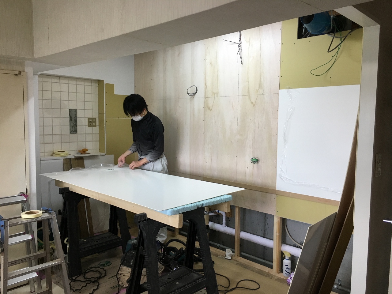 先ずは、キッチンパネル貼からスタートです。