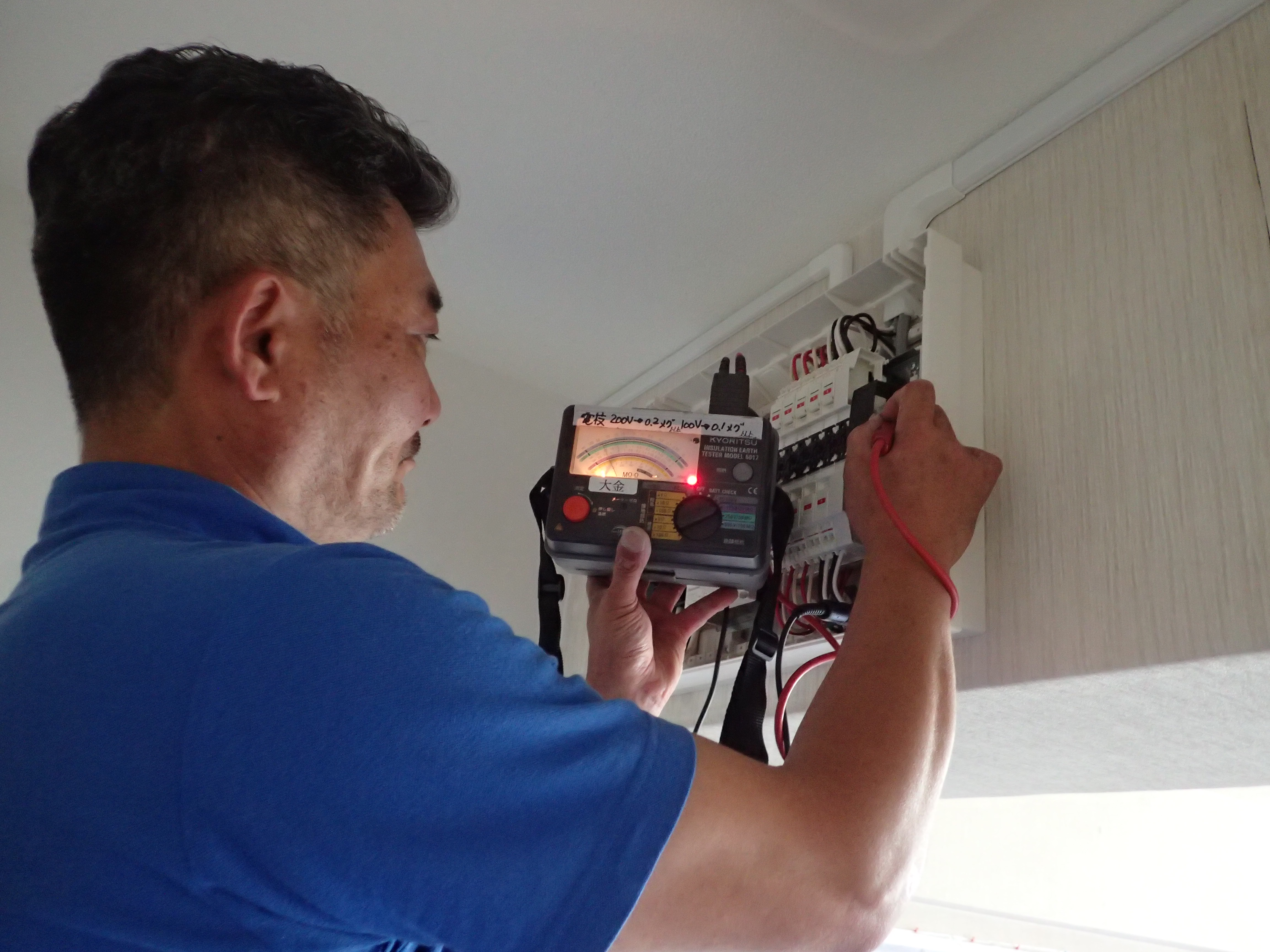 次は僕の出番で、工事後の漏電検査をさせていただいたり。