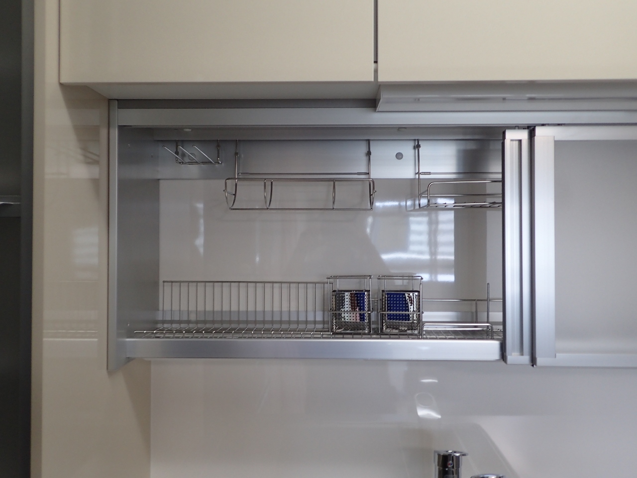 扉を開けるとこんな感じの、水切りラックになってます。