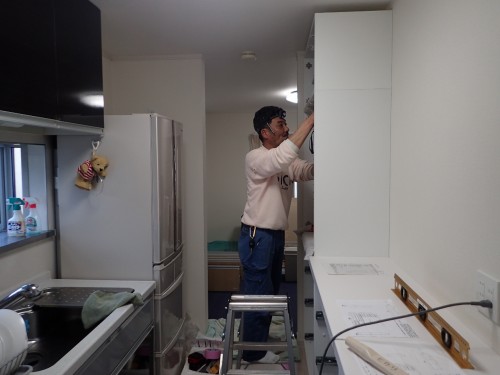 吊り戸棚をボルトで固定してくれたり