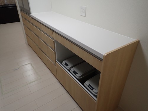 ゴミ箱ワゴンも採用していただき ばっちり収納の完成です。