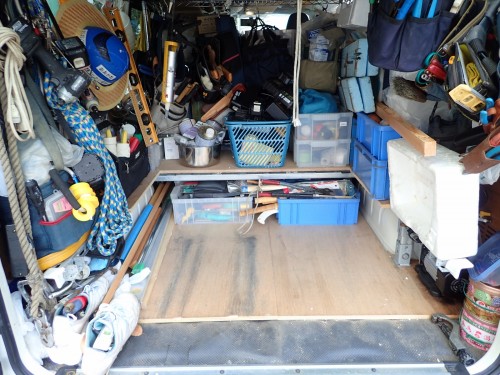 車検に対応する為、床板も固定はせずに乗せてあるだけなので