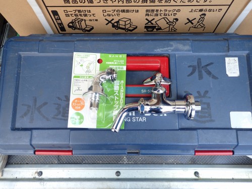 こちらのホーム水栓とオートストップの吐水口を積んで出発です。