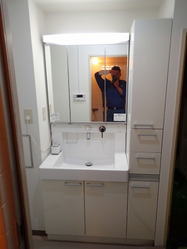 収納たっぷりの洗面化粧台の完成です、めでたしです。