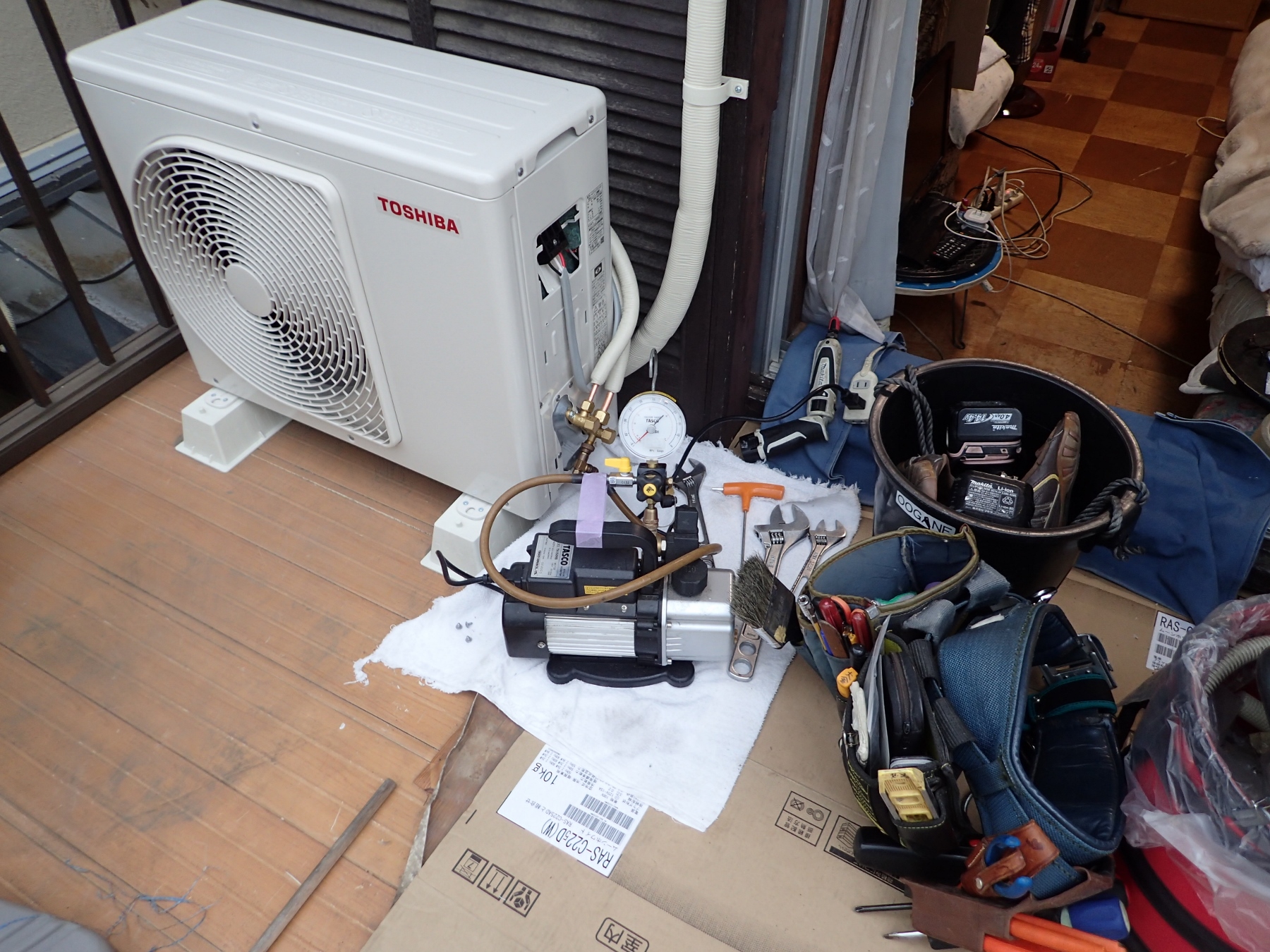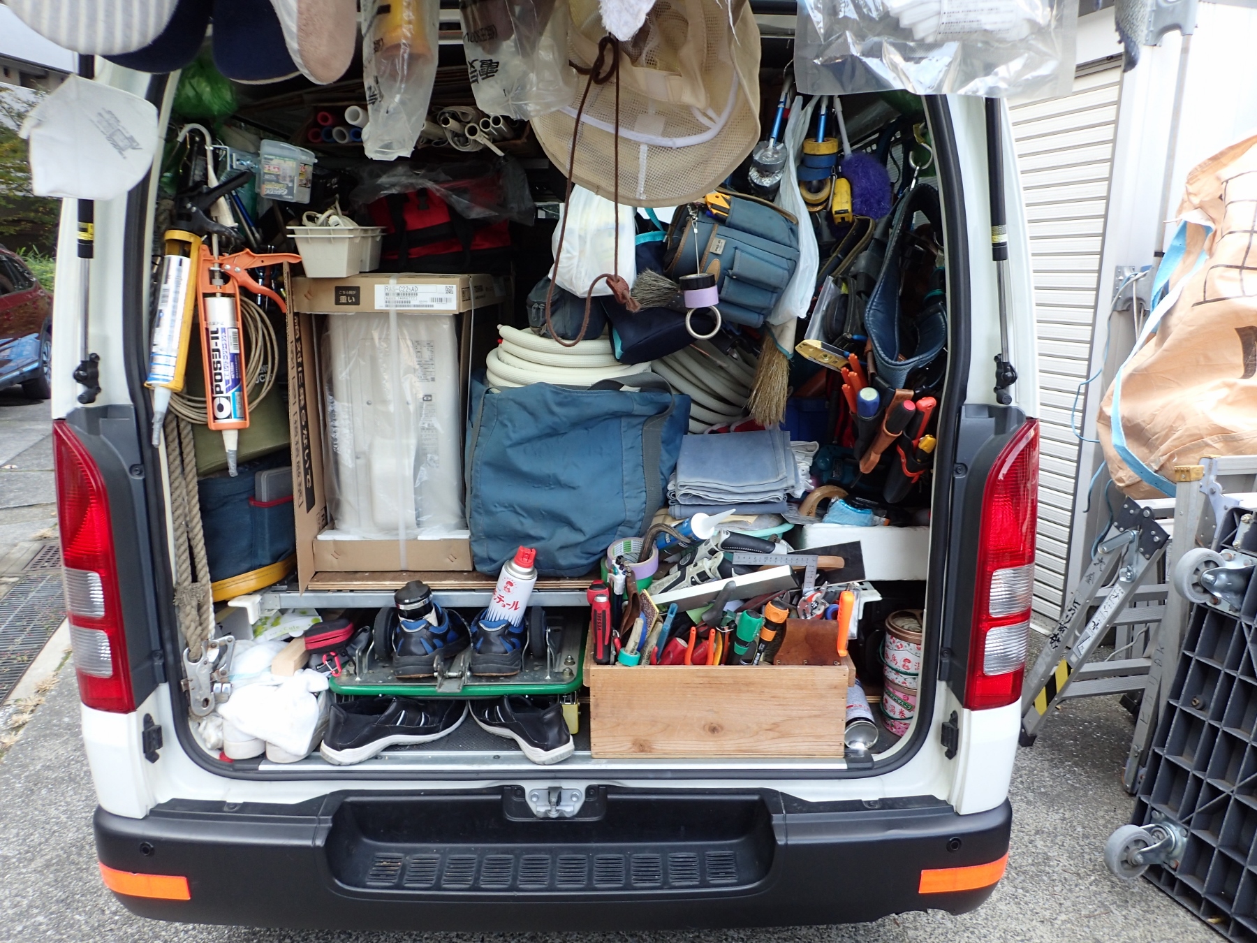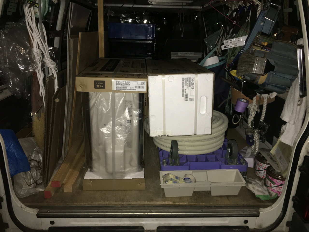 そして、最終で明日のエアコン工事の準備で、夜積み込みをして