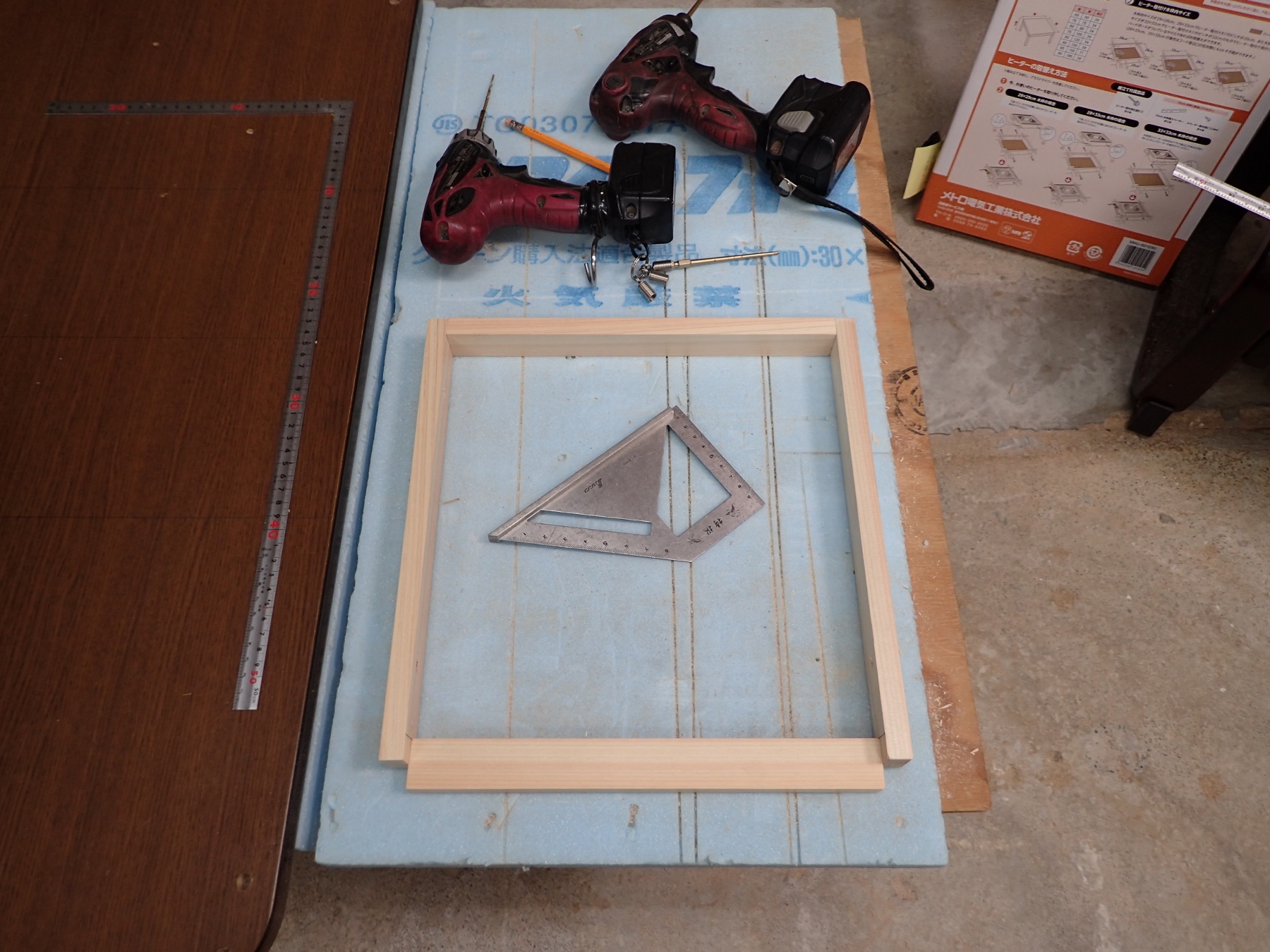 1日の仕事を終えてから、自宅の倉庫でこたつの木枠作りをいたします