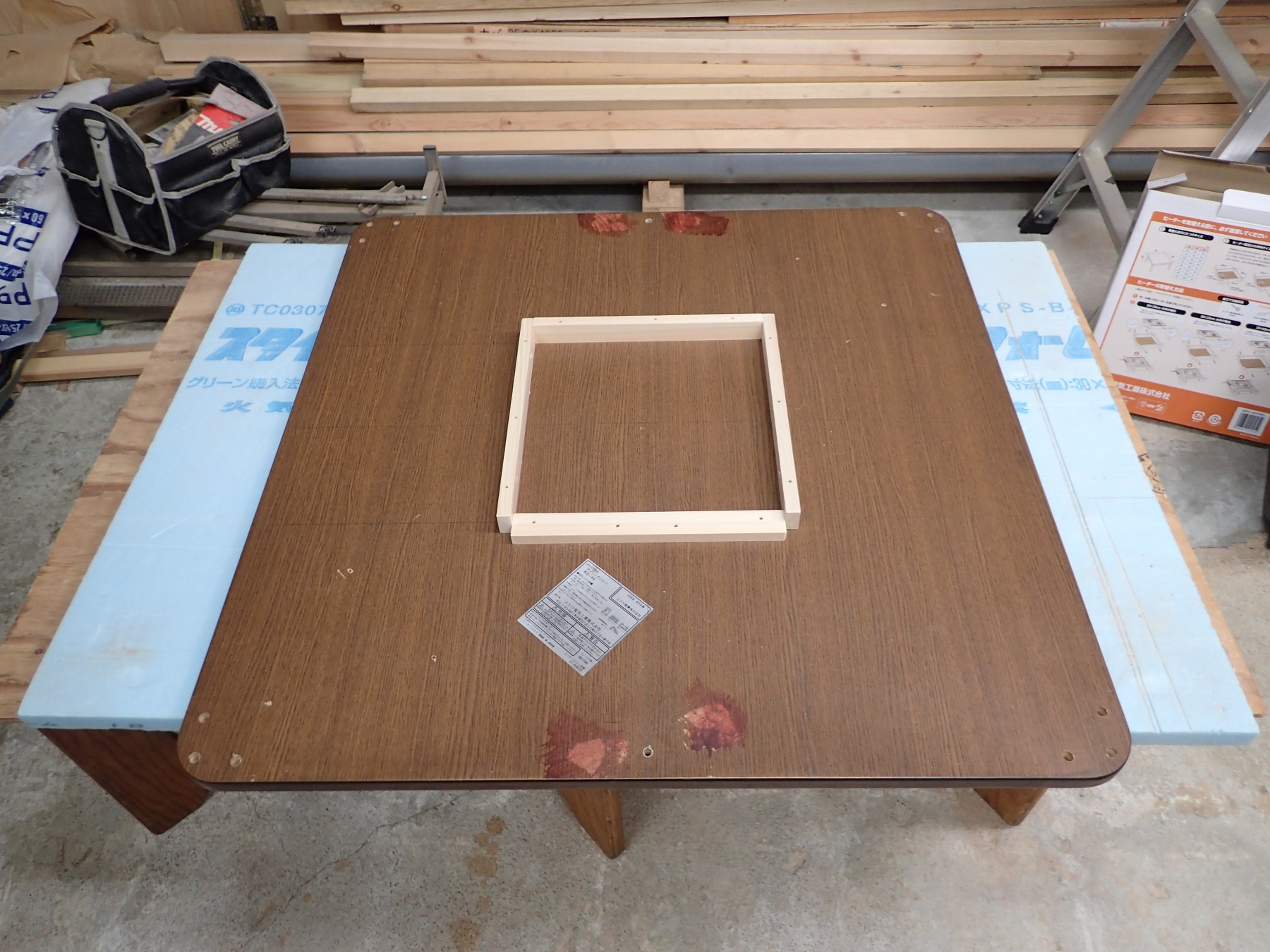 Y様と相談して、簡易的な木枠を作る為にこたつを一泊お預かりする事になりました。
