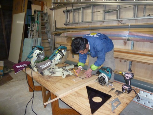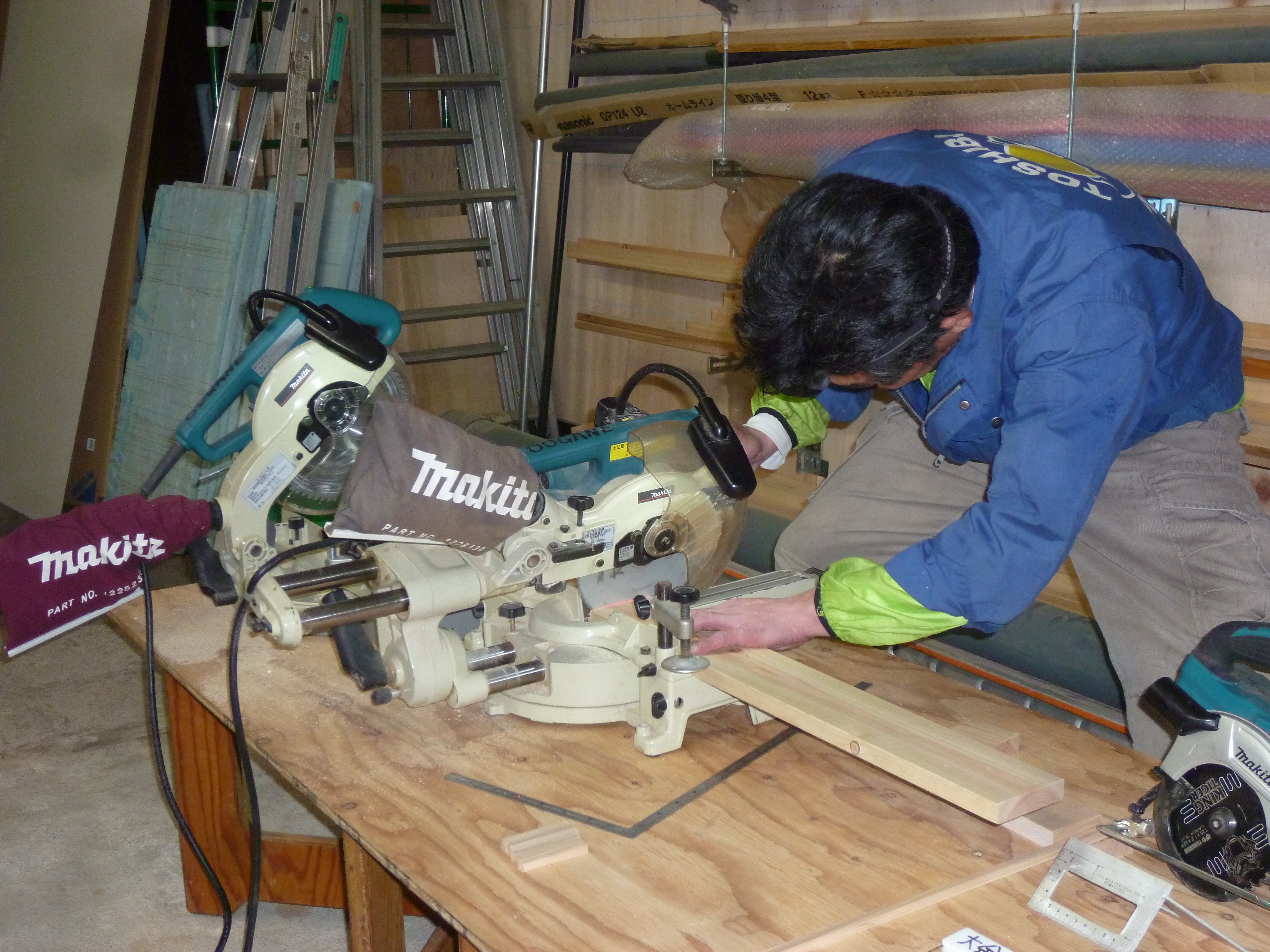 次は木材のカット作業です。