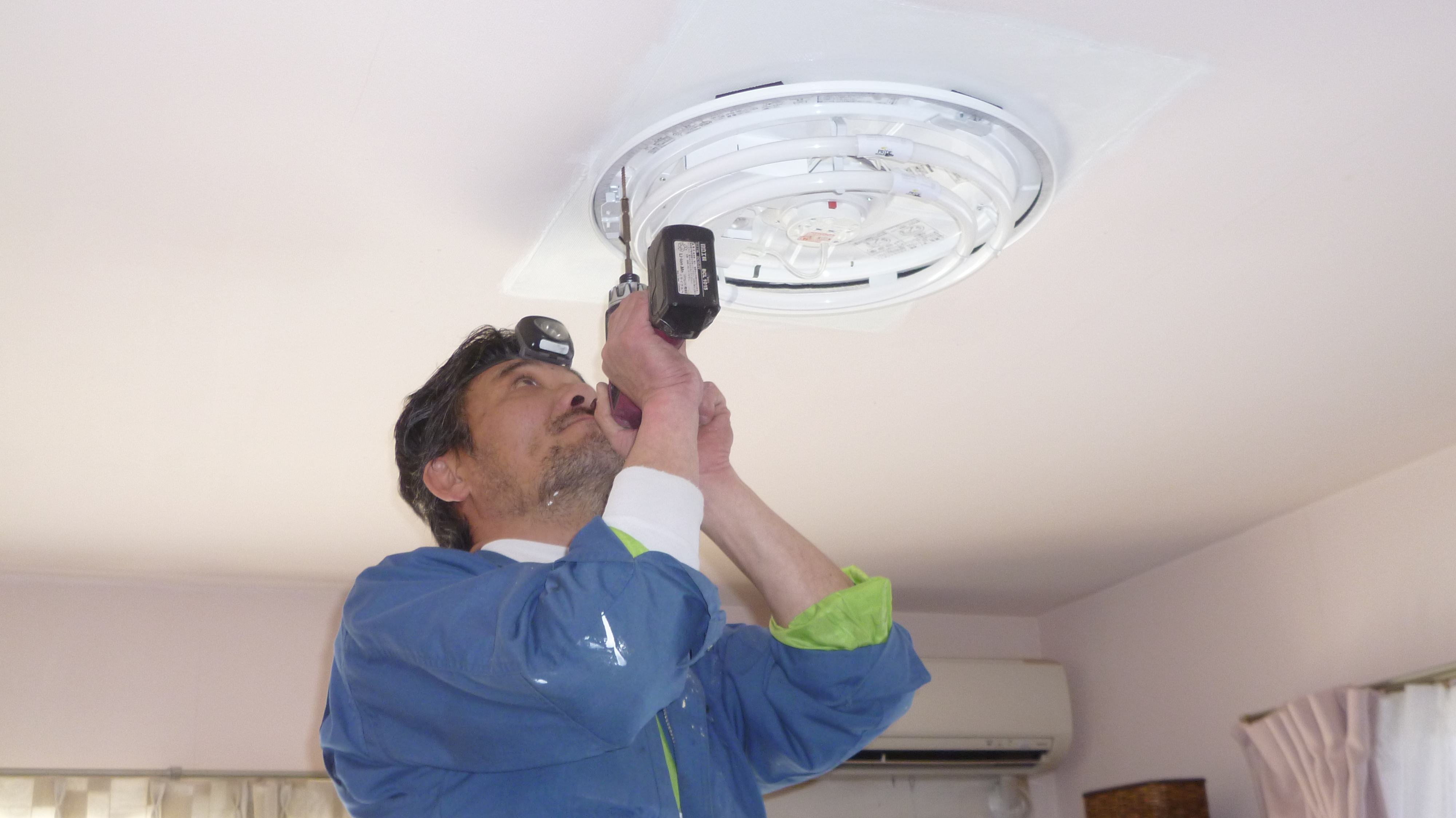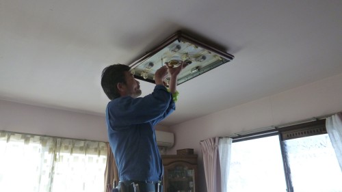 耐震補強の為に ドリル工事で、照明器具を しっかり取り付けさせていただきます。