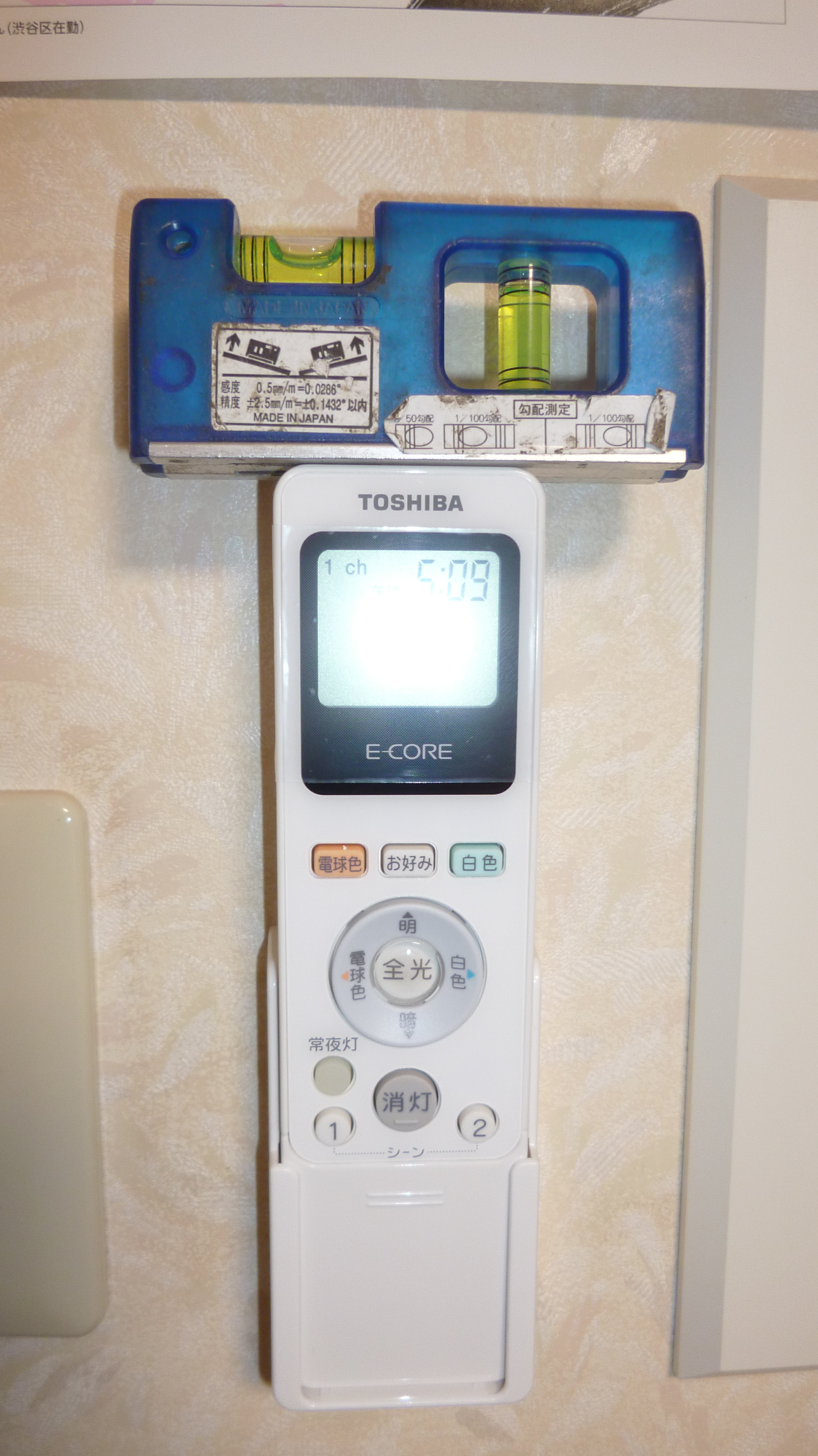 リモコンの取り付けも ヒカリ電機こだわりの、水平ヨーシです。