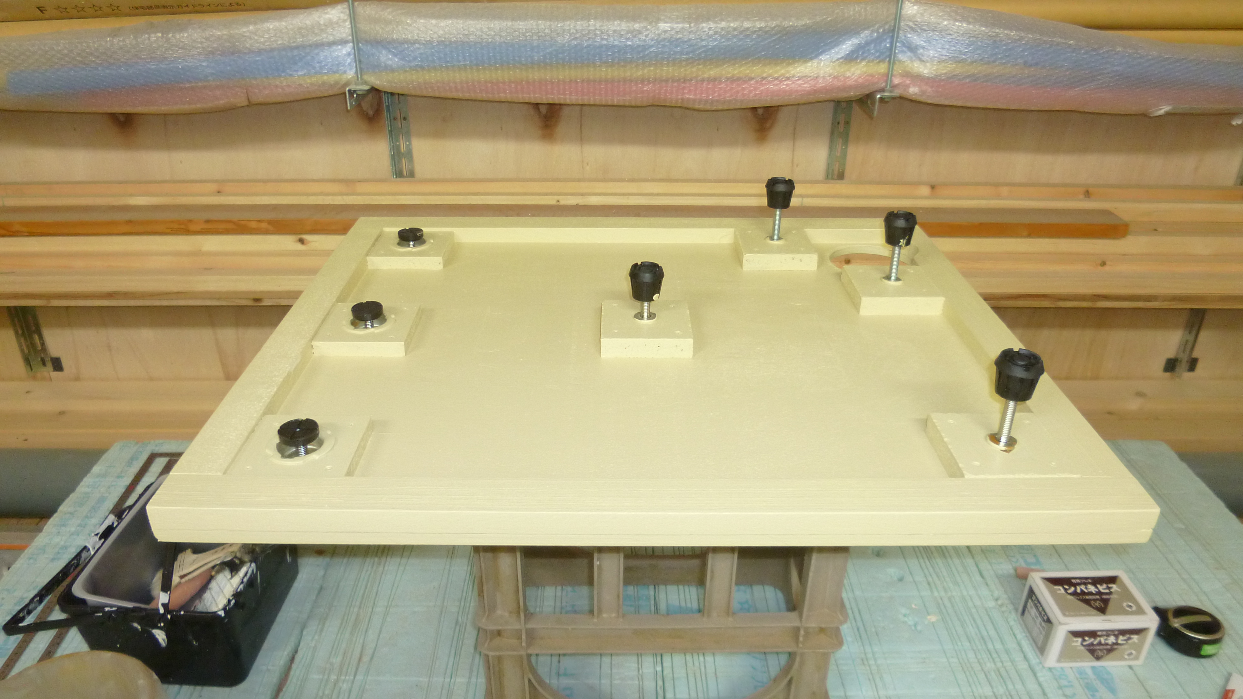 傾斜床の為に調整脚を7本取り付けさせていただきました。