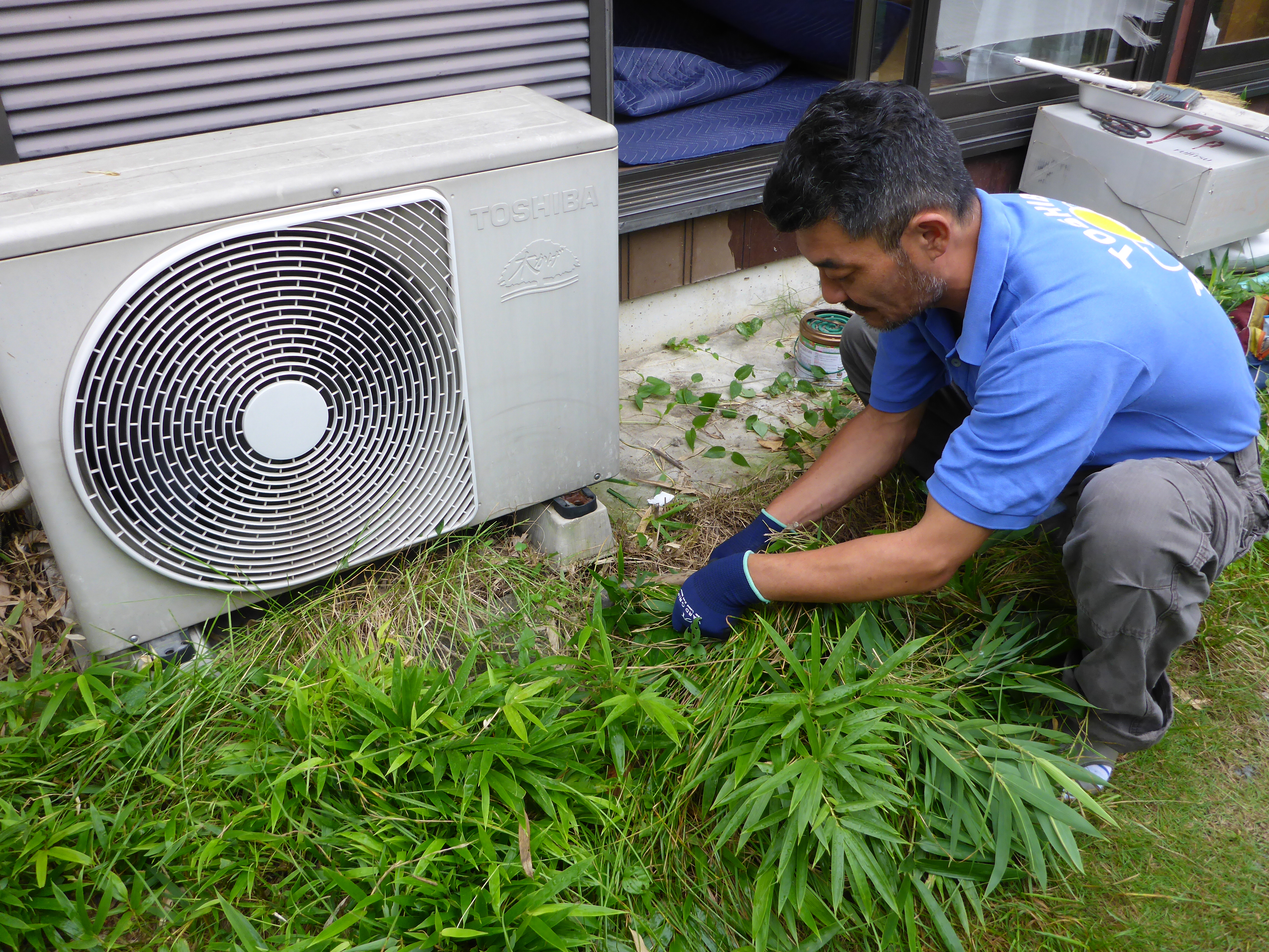 エアコン工事の前に まずは、草刈をさせていただきます。