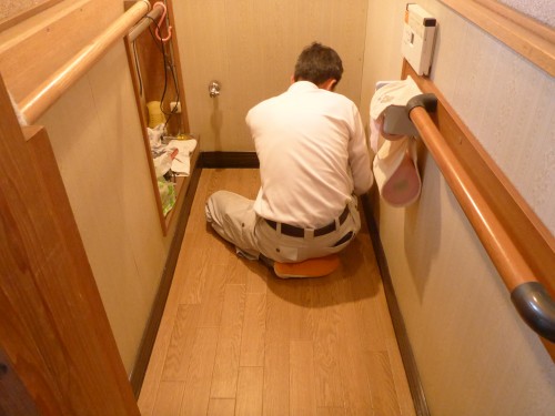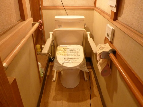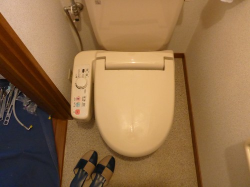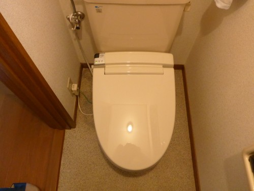 こちらのトイレに新規で、ウォシュレットの取り付け工事をさせていただきます。