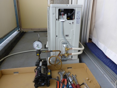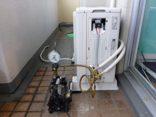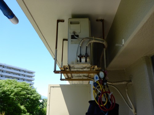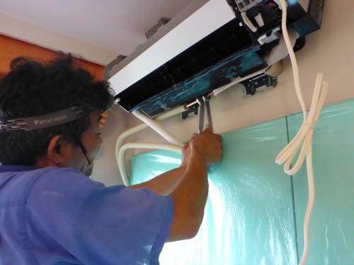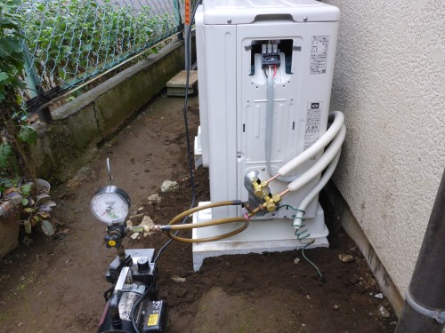 エアコンの工事依頼と、修理依頼が立て込んでいる ㈱ヒカリ電機 大金より。
