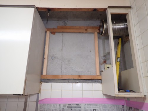 「きつきつ」に木質壁が室内機を蔽っていてこのままでは