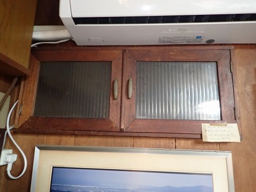 (この木質壁はIご主人のこだわりです、良い感じのご主人の社長室です