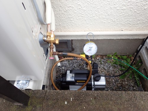 エアコン工事の大事な最終工程の真空引き&機密試験も
