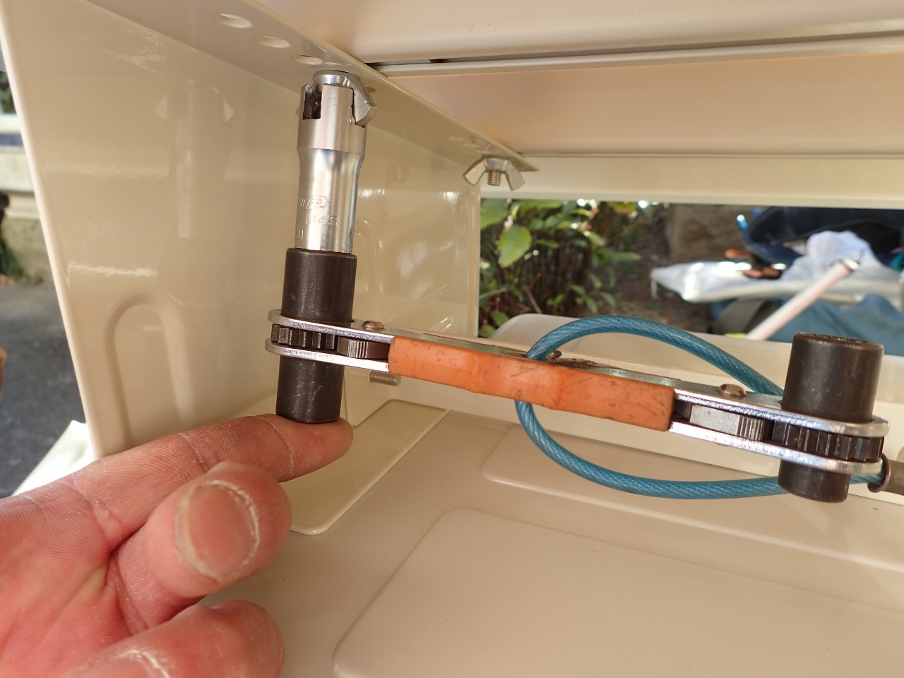 屋根部分の締め付けは、蝶ナットレンチでしっかりと締め付けをして。
