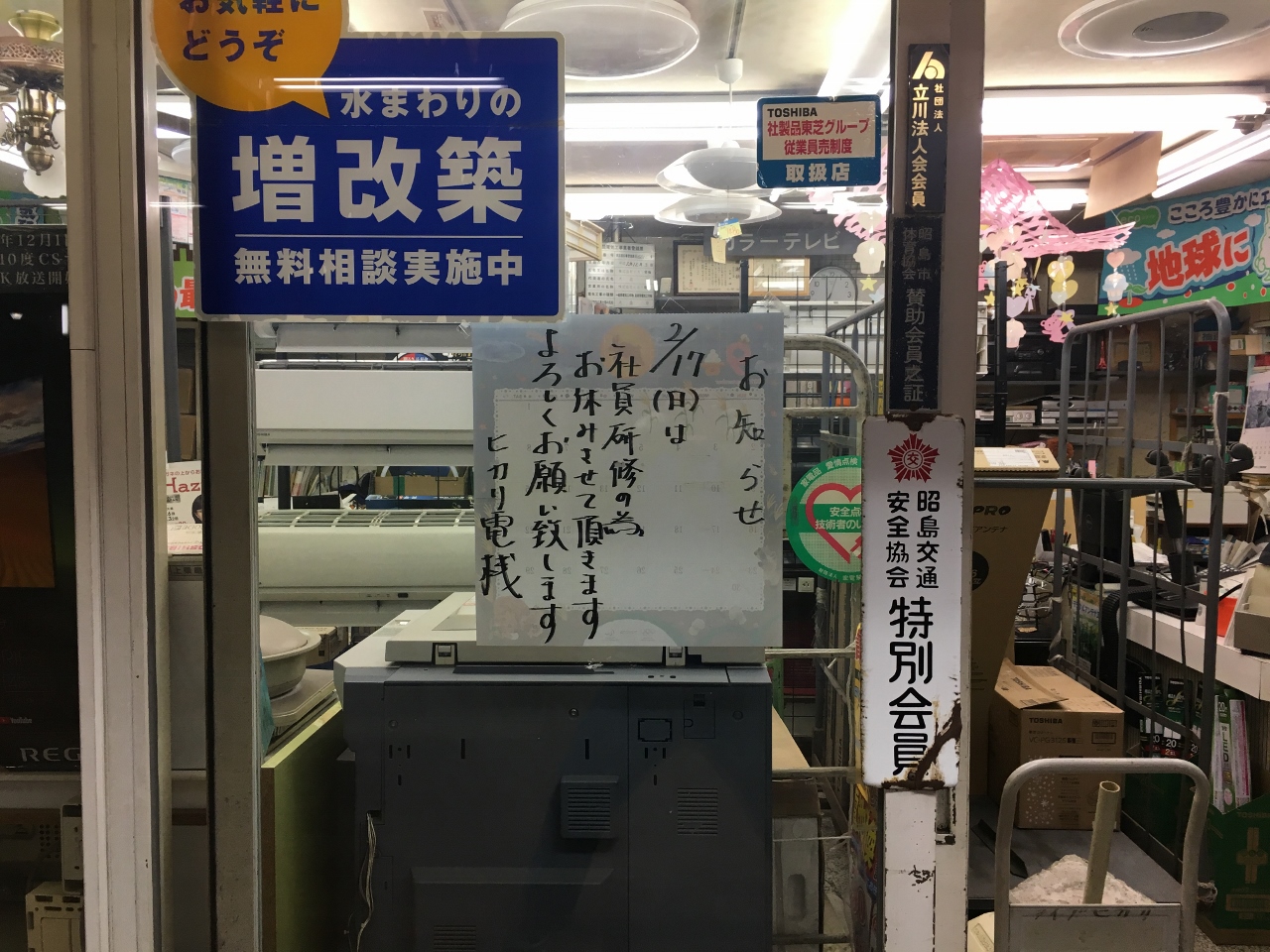 明日2019/02/17(日曜日)は、社員研修の為お休みをいただきます