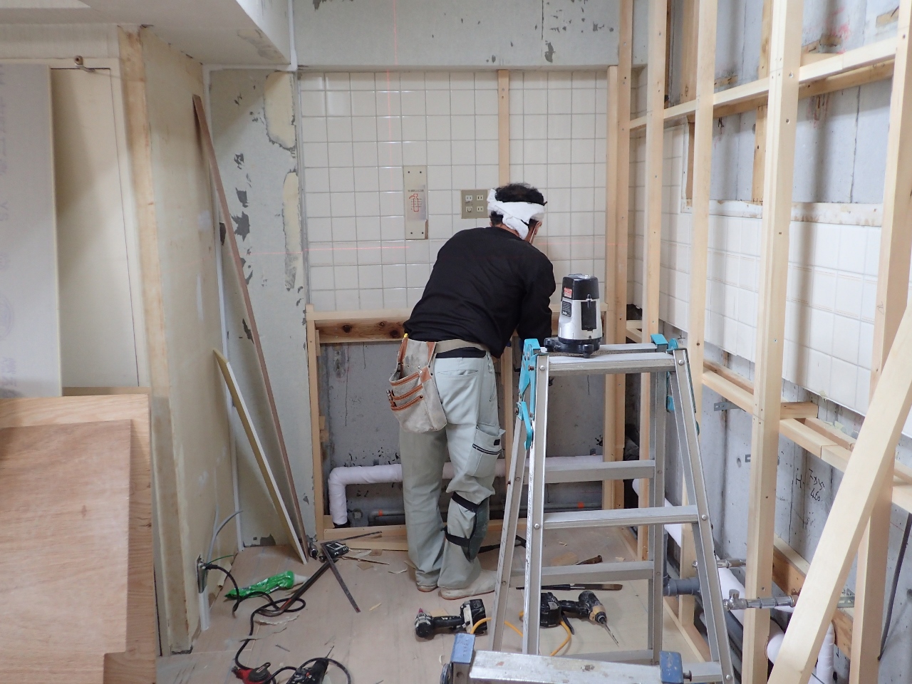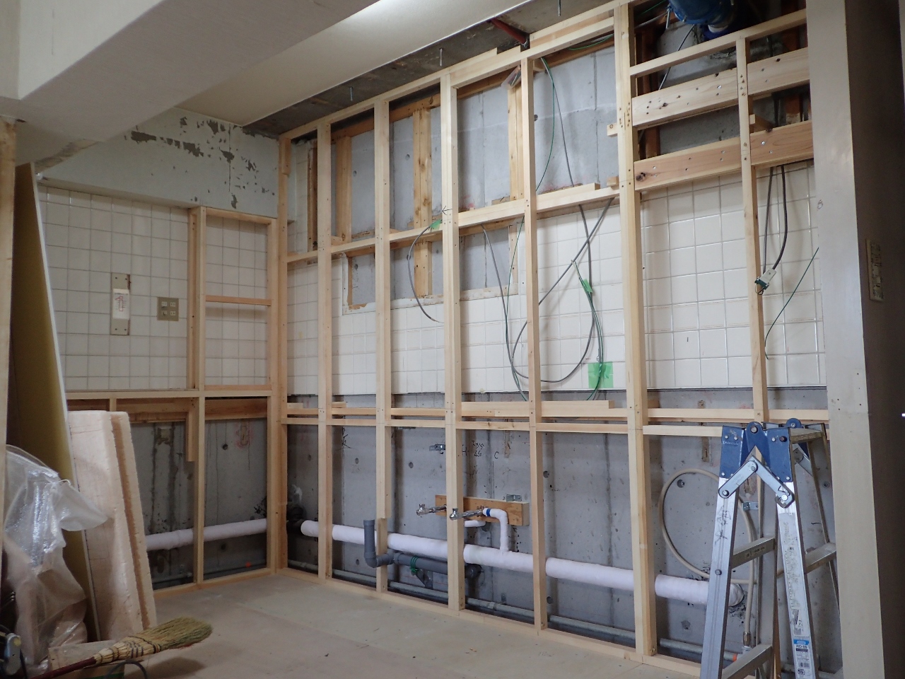 で、いよいよ大工さんに入って頂いて、キッチンを支える軸組を施工してもらいます