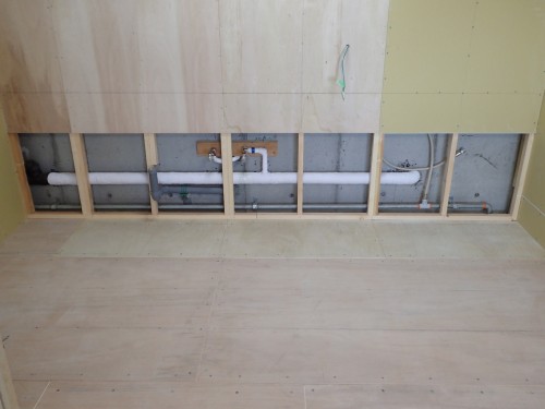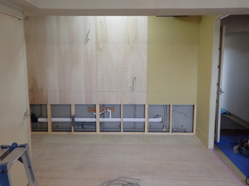 しっかりと背板を間柱にビス留めして、配管も新規露出配管で入れて来れました。
