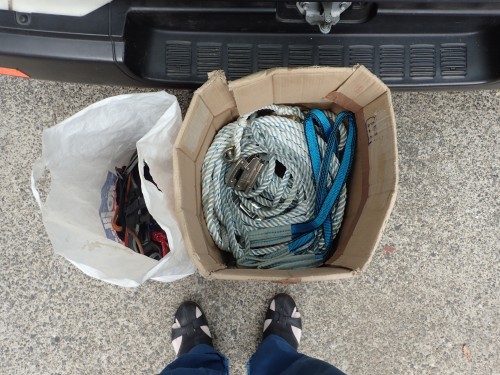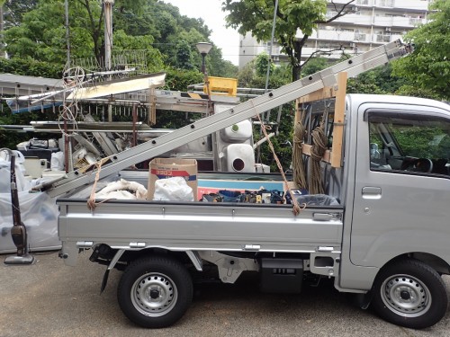K様にお買い上げ頂きましたエアコンと、部材一式を積んで出発です。