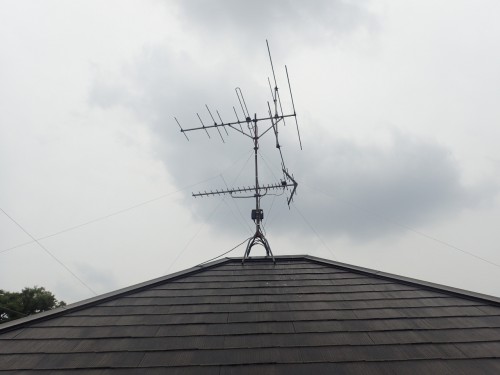 旧品アンテナの撤収が、屋根の角度がちょっと怖いので