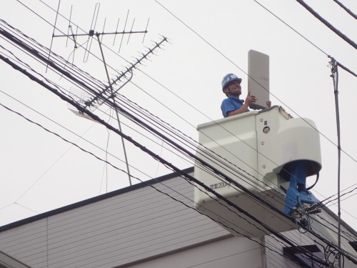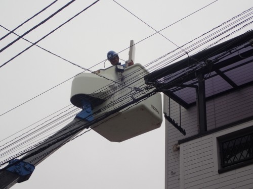 ここで、高所作業車の出動で、電線がいっぱいあったり