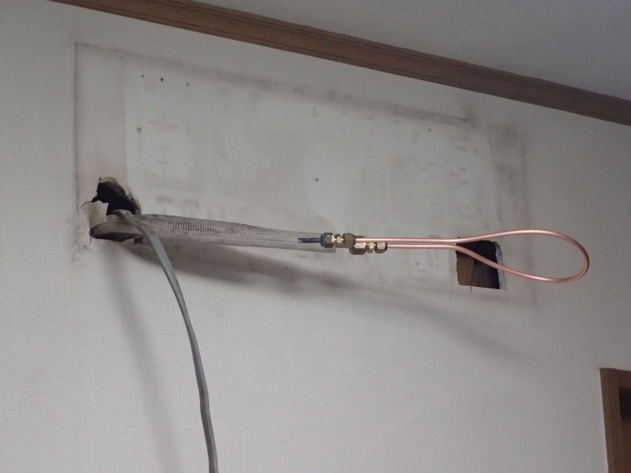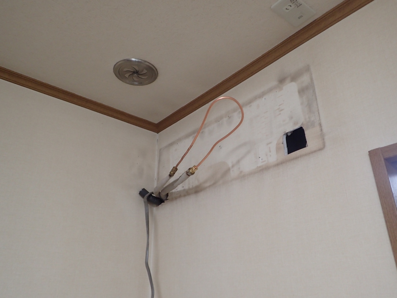 エアコンを2台交換工事と、隠蔽配管を再使用する為、念の為に配管洗浄と