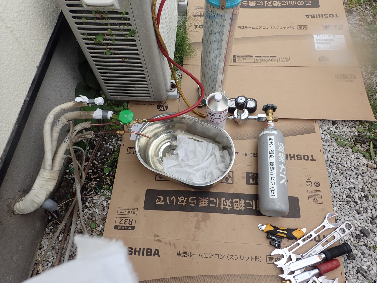 既設のエアコンが故障からの取替ではない為、汚れたオイル等も