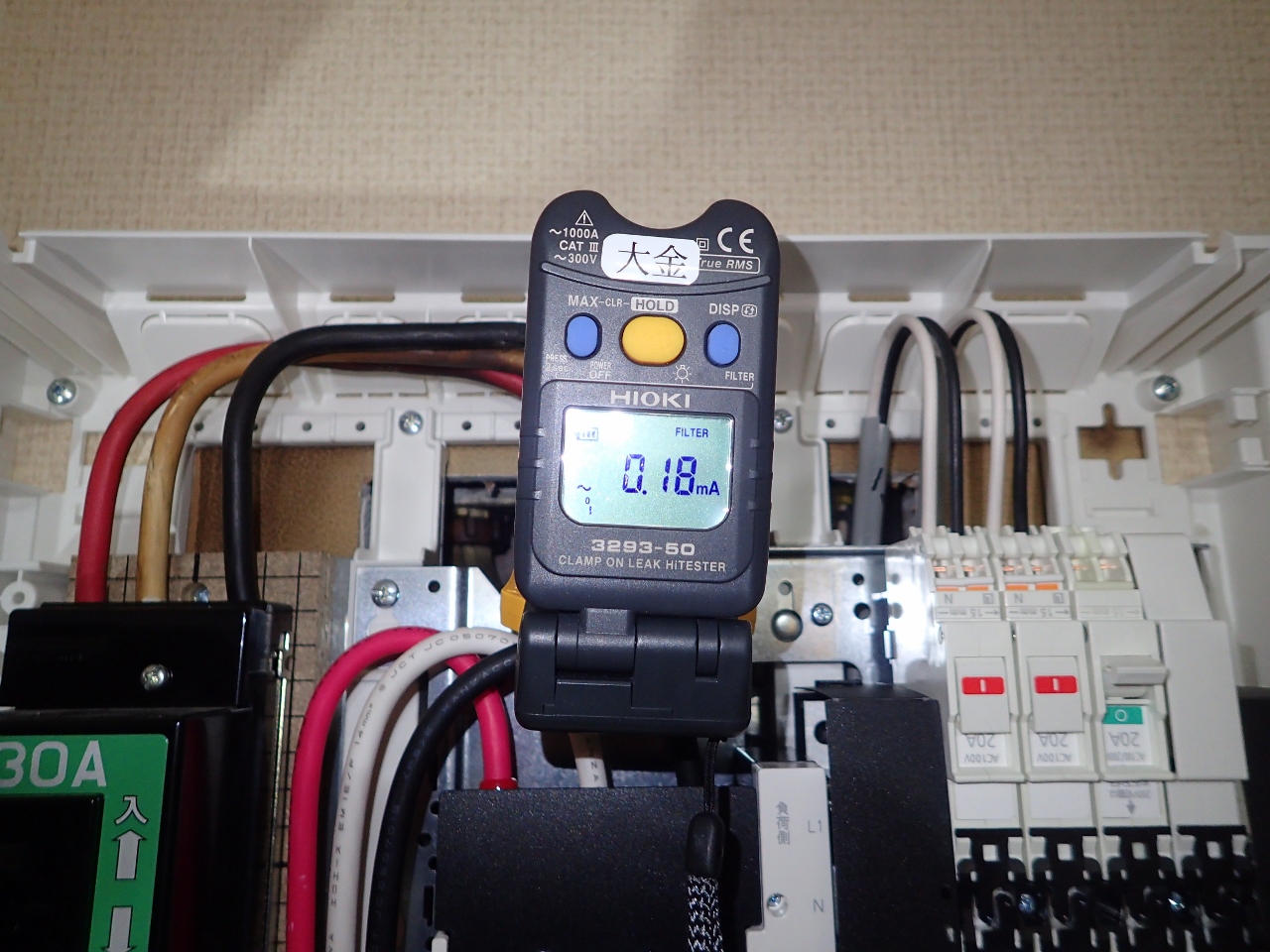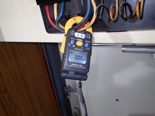 続いて、全ての電気を復旧させてから、漏れ電流の検査です