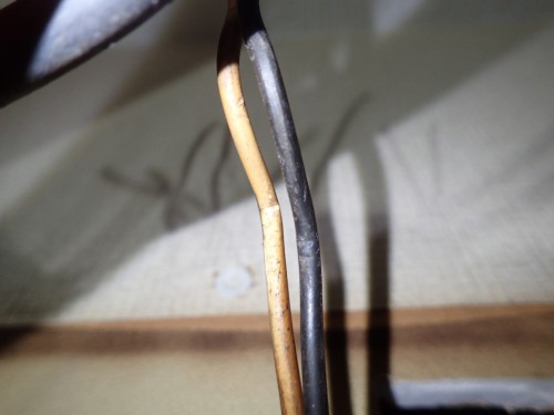 目をこらして見ると、2回線程ケーブルが挟まってる所が有り