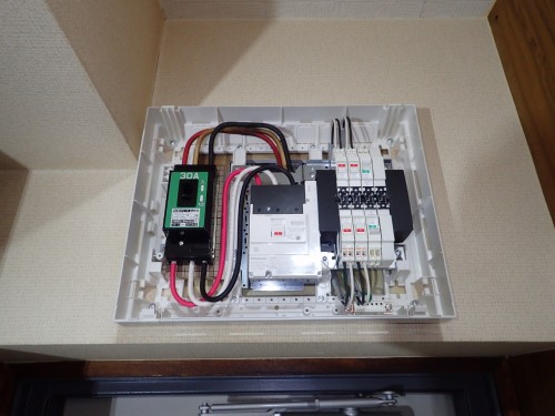 今回の分電盤取替工事で、漏電遮断機付きに成りましたので