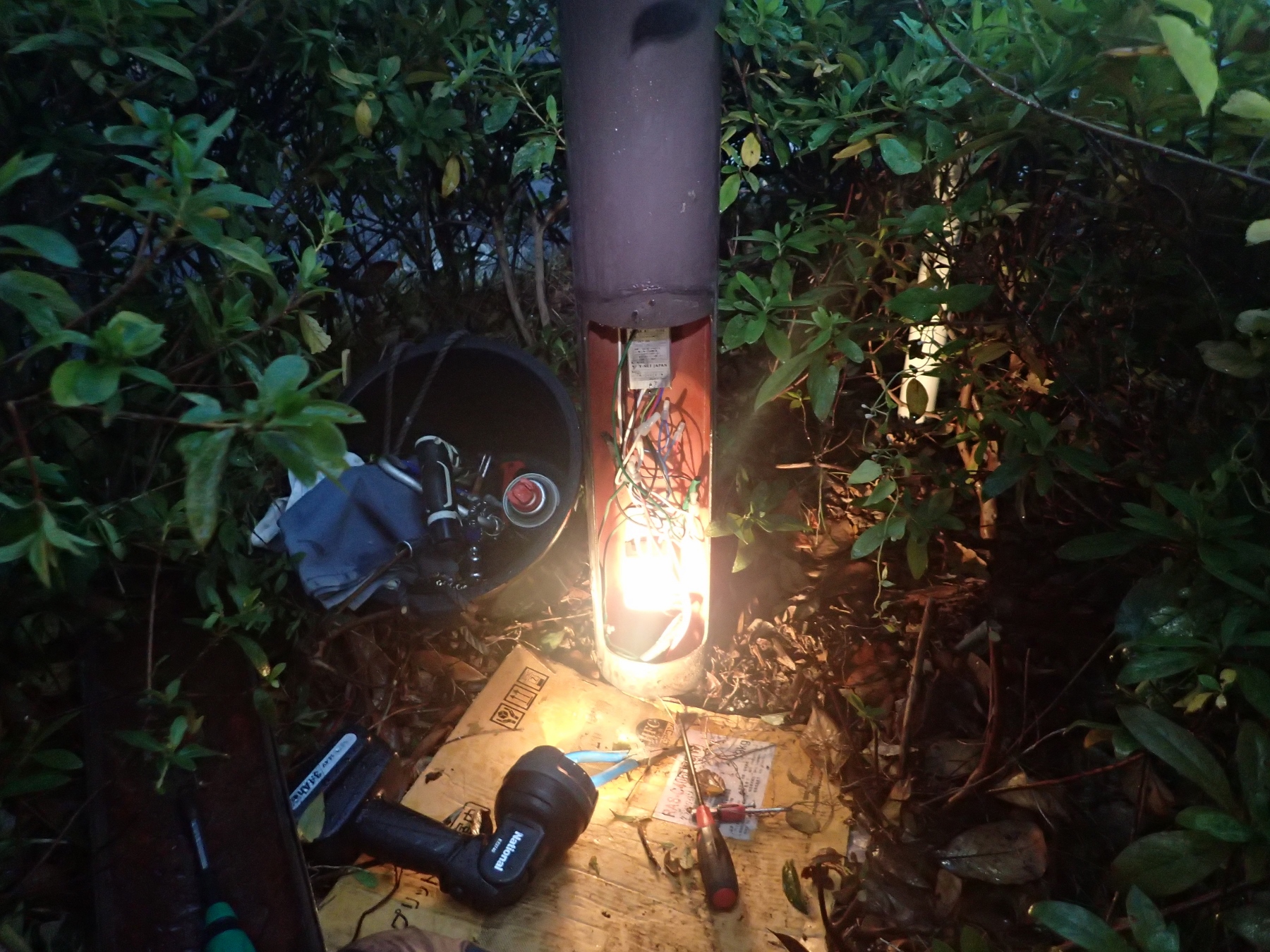 雨の中のポール外灯修理 K管理様ご依頼ありがとうございます。