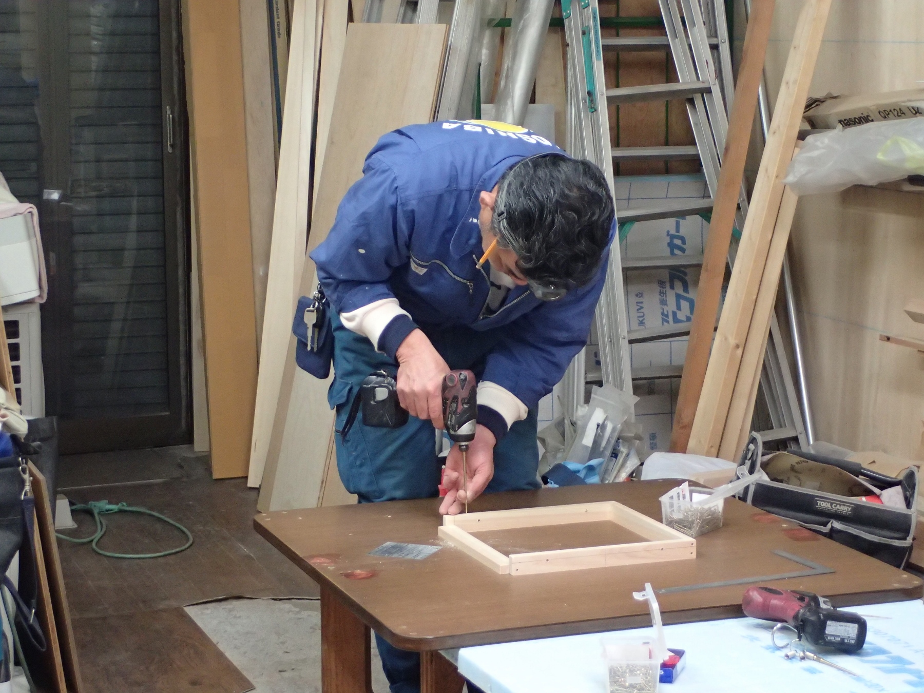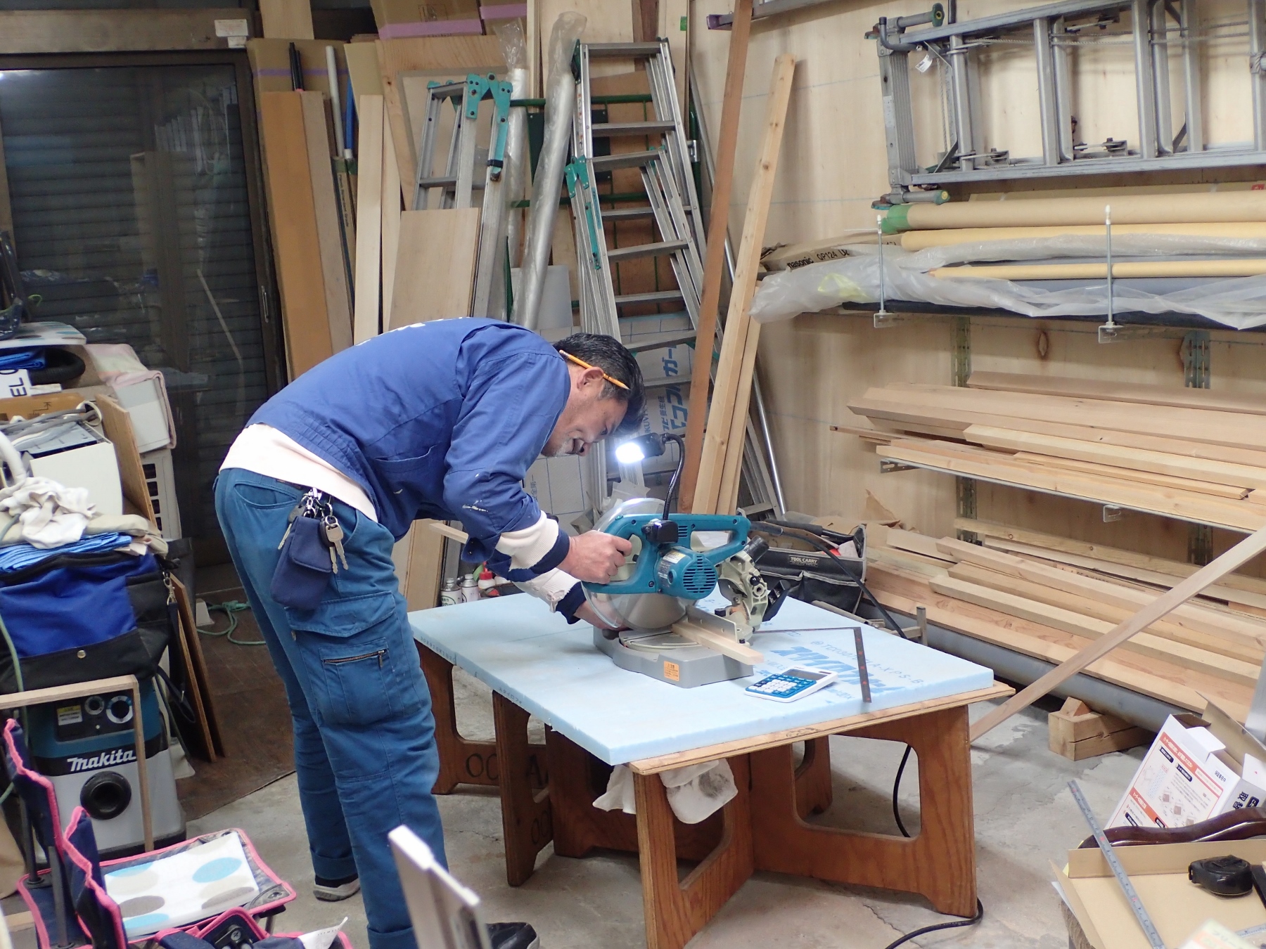 1日の仕事を終えてから、自宅の倉庫でこたつの木枠作りをいたします