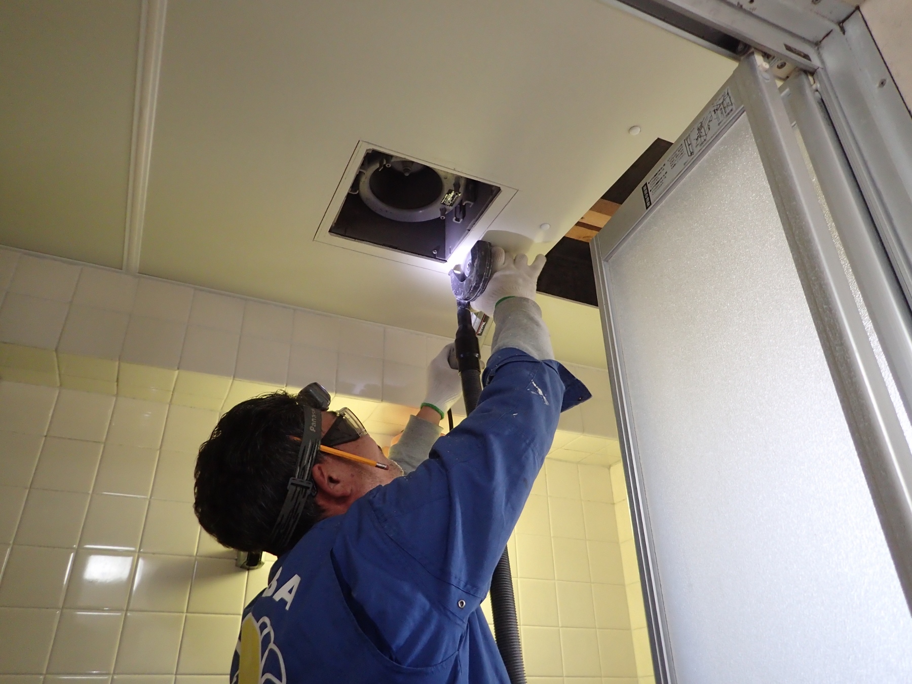 こちらの浴室に浴室乾燥暖房機と天井点検口を付けさせていただきます。