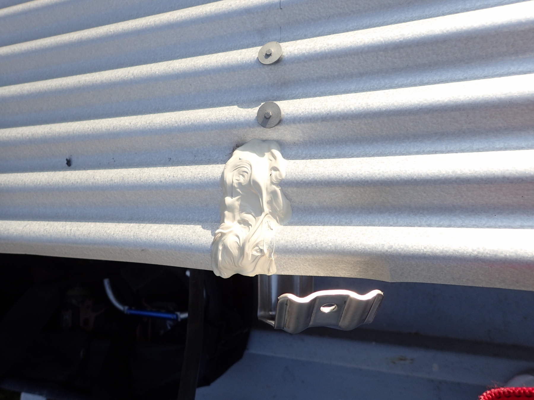 支線留め金物の裏側にもたっぷりコーキングを塗って。