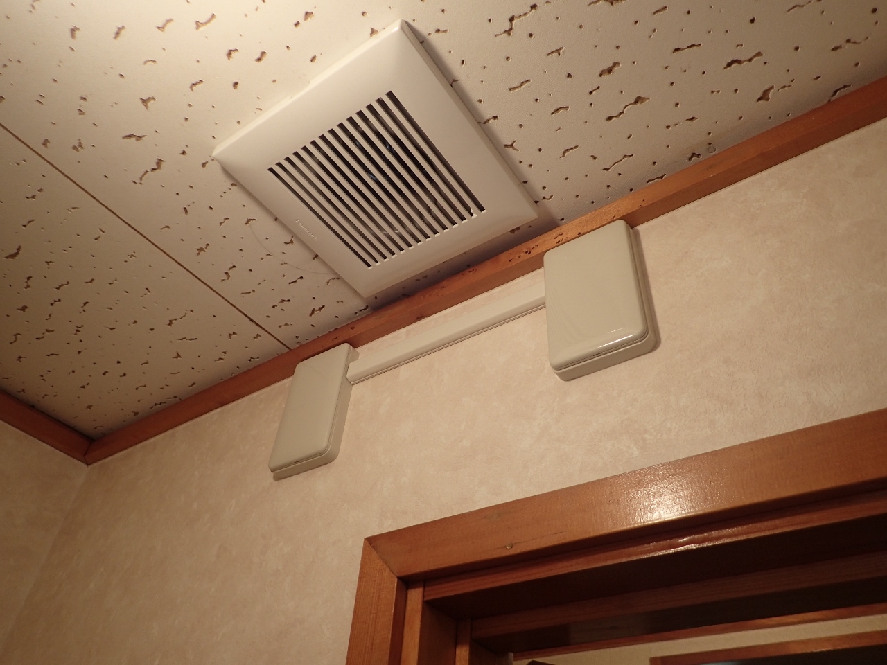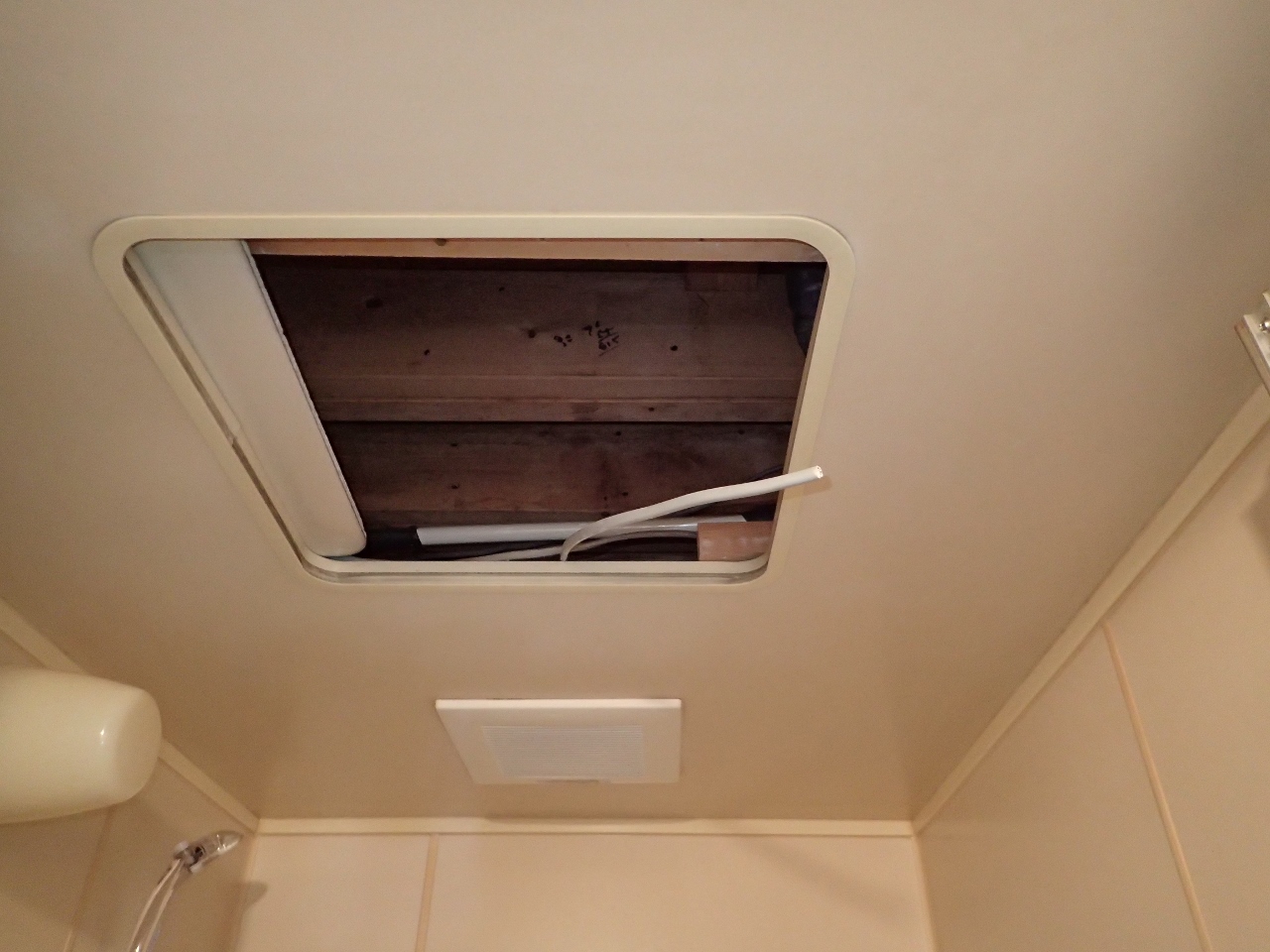 トイレ内は柱を避ける為に、二ケ所穴あけを致しまして。