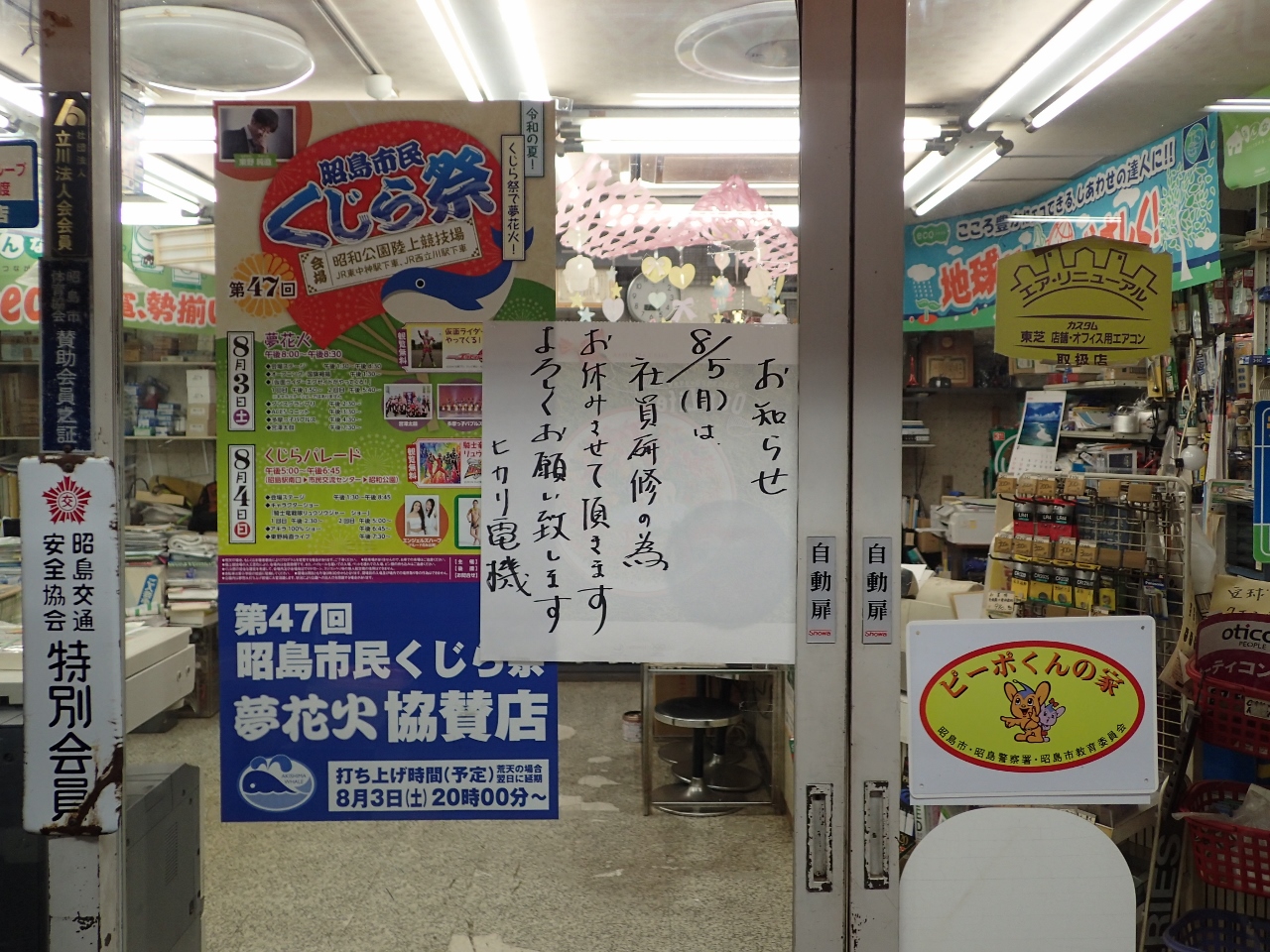 2019年08月05日(月曜日)臨時休業のお知らせ 2019年8月4日 by hikaridk カテゴリー ヒカリ電機からお知らせ 毎々各種ご依頼を下さるお客様へ、誠にありがとうございます 2019年08月05日(月曜日)は誠に勝手ながら社員研修の為お休みをいただきます 色々とご不便おかけし申し訳ございません、よろしくお願いいたします なお留守番電話にメッセージを残していただけると幸いです。 店長大金より。 ランキングに参加中。クリックして応援お願いします! にほんブログ村 にほんブログ村