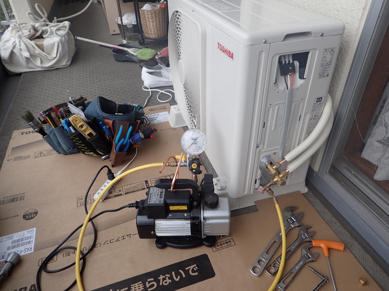 いきなりですが、新しいエアコンも手塩にかけて慎重に取付をさせて頂きました