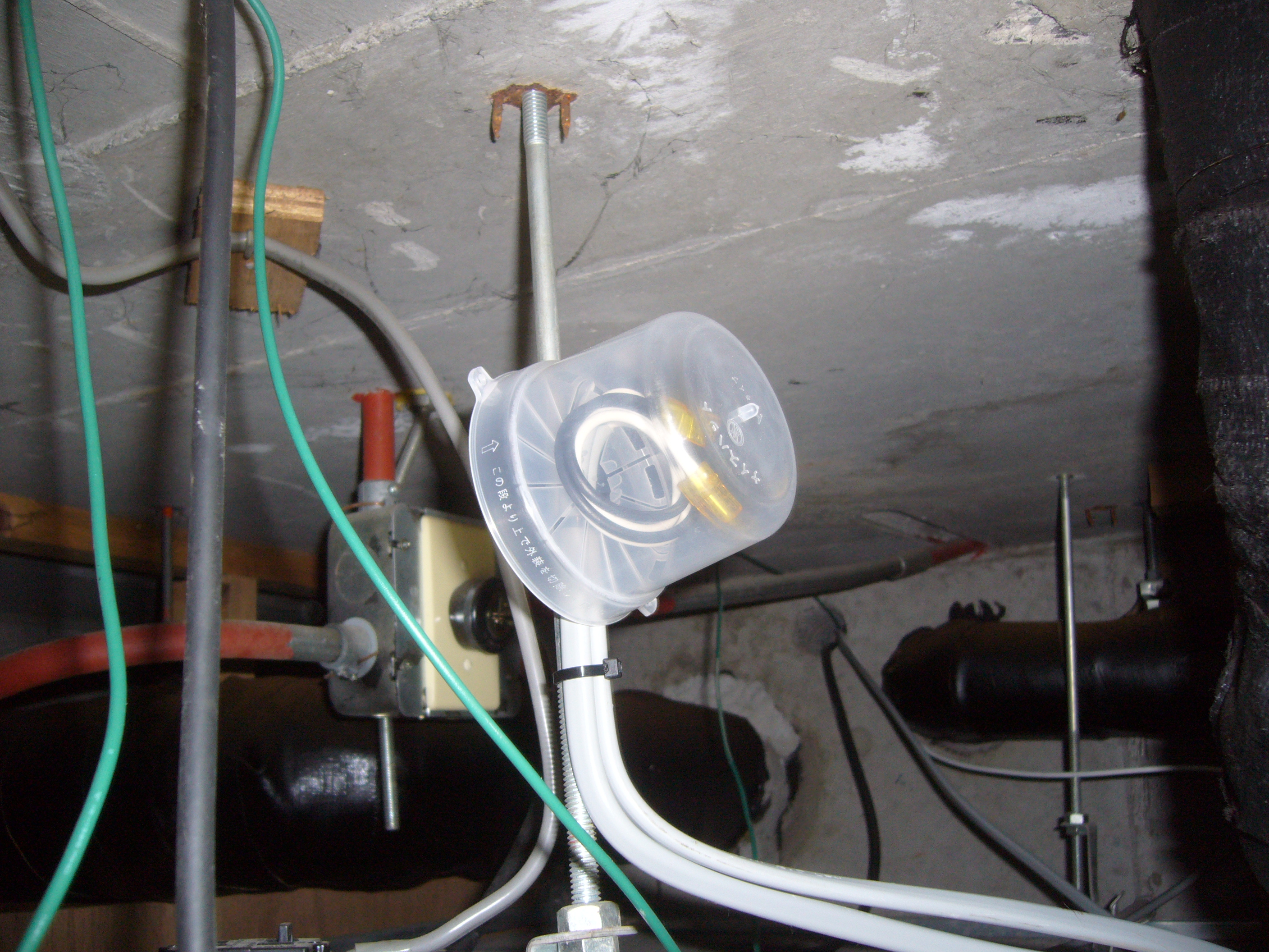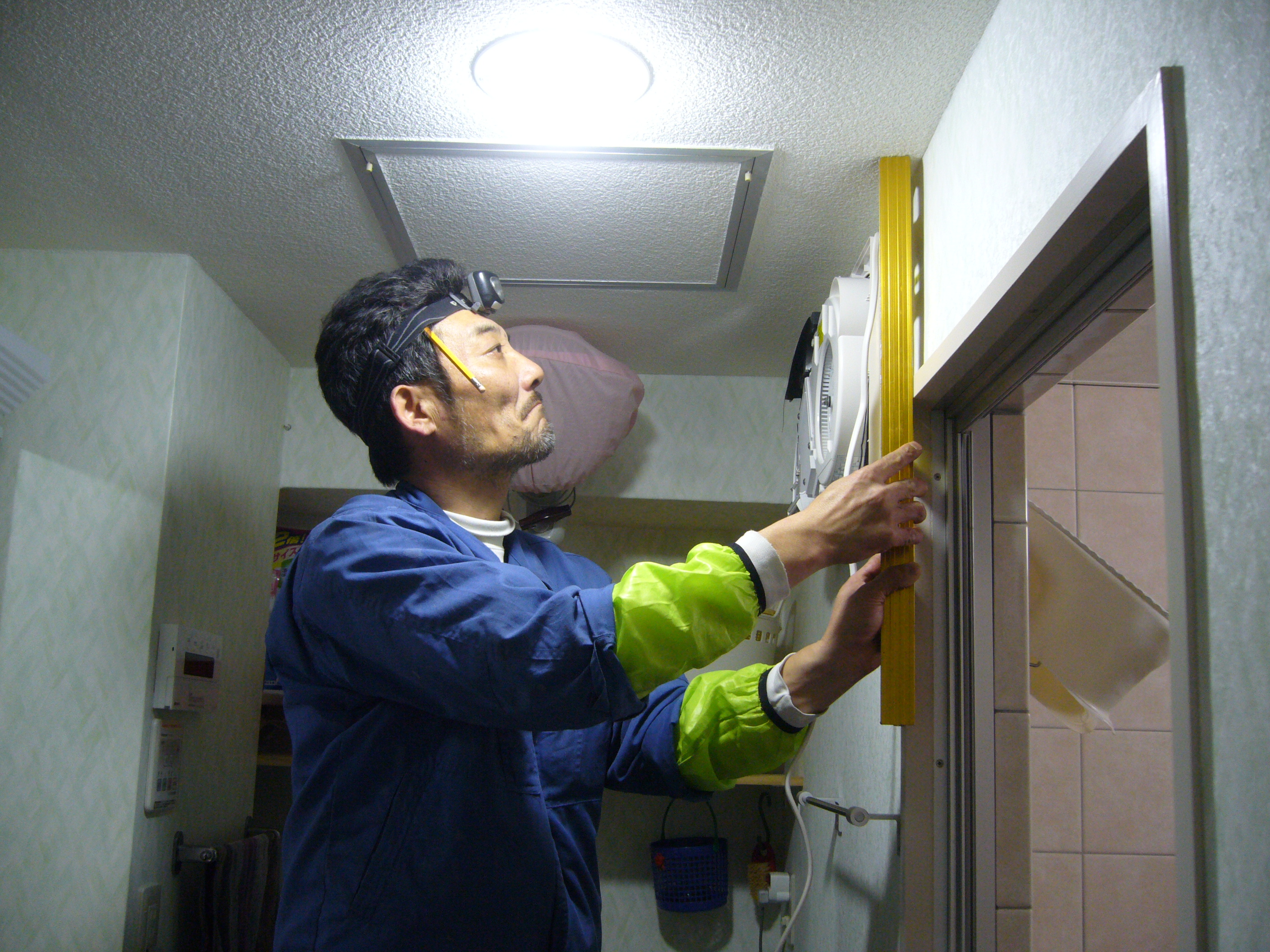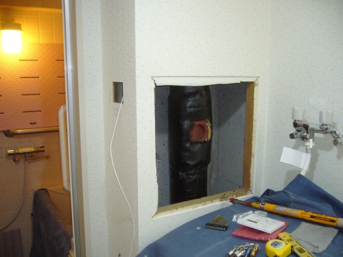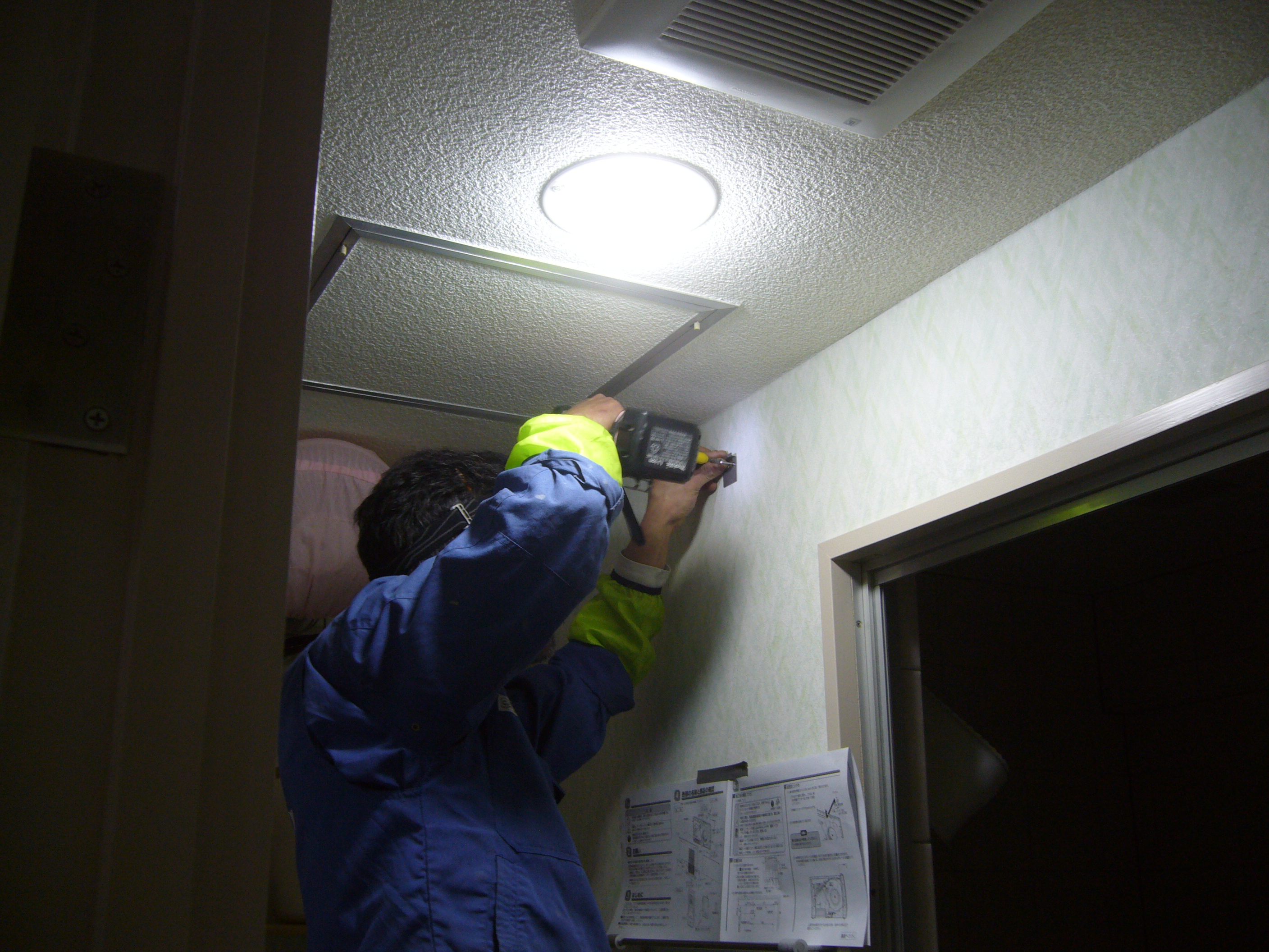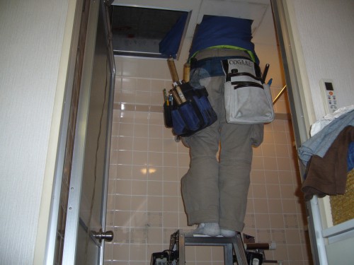 無事に配線も終わり、洗面所の天井裏で結線です。